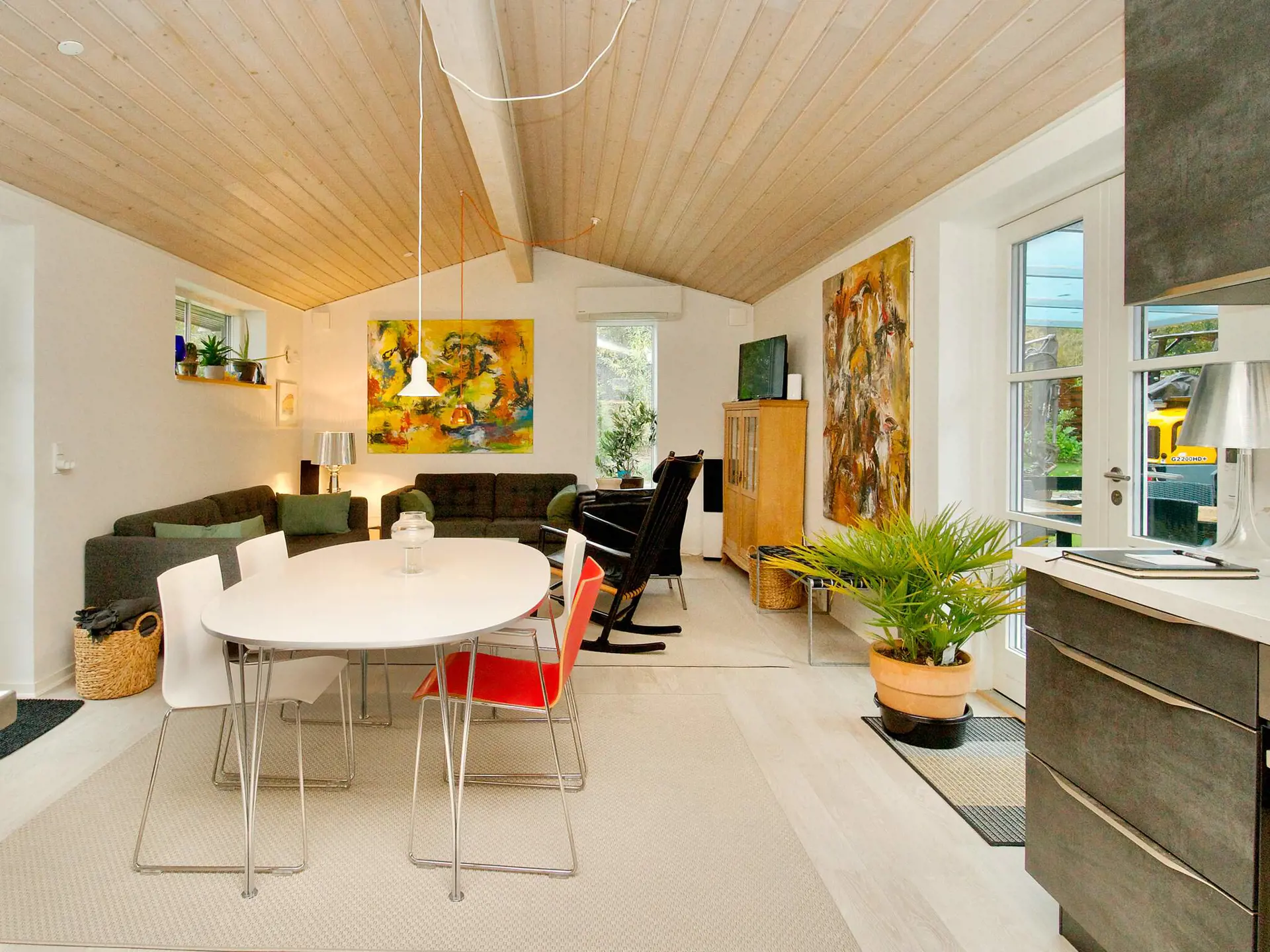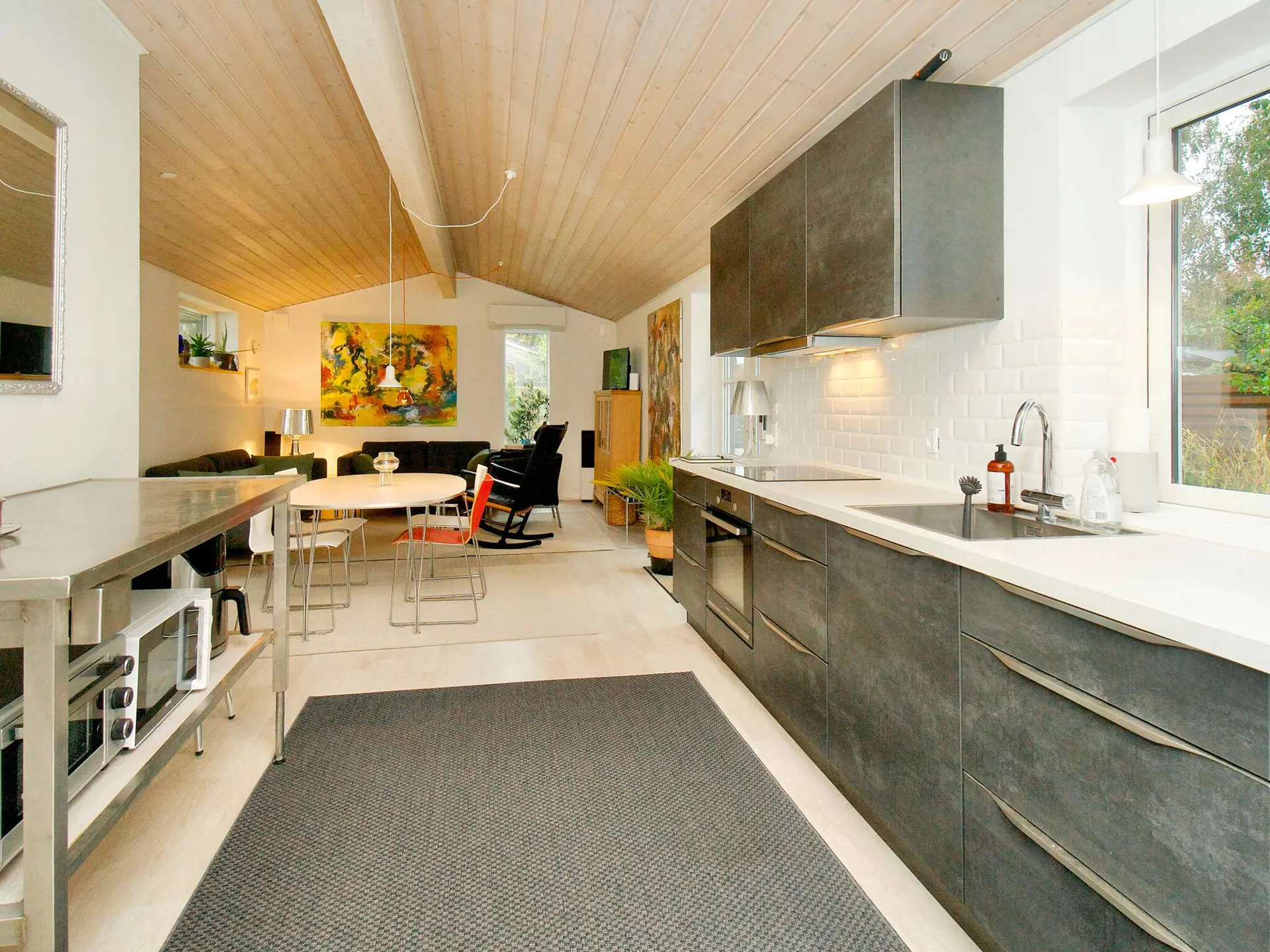 Das Ferienhaus bietet eine gute Raumaufteilung mit offenem Küchen-/Wohnbereich inklusive Ess- und Sitzecke und Zugang zur Terrasse auf beiden Seiten. Zur Unterhaltung gibt es Smart TV und Google Cast sowie eine Bluetooth-Stereoanlage und einen tragbaren Bluetooth-Lautsprecher.