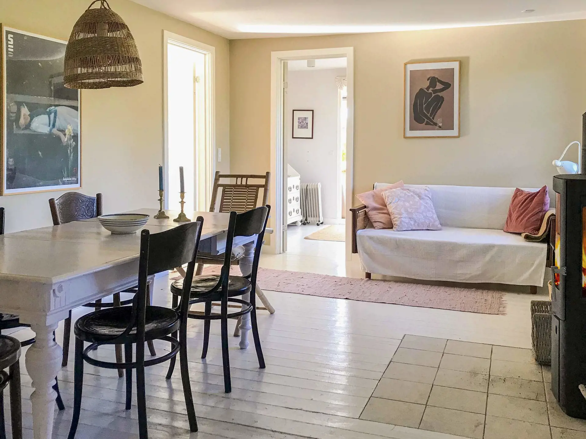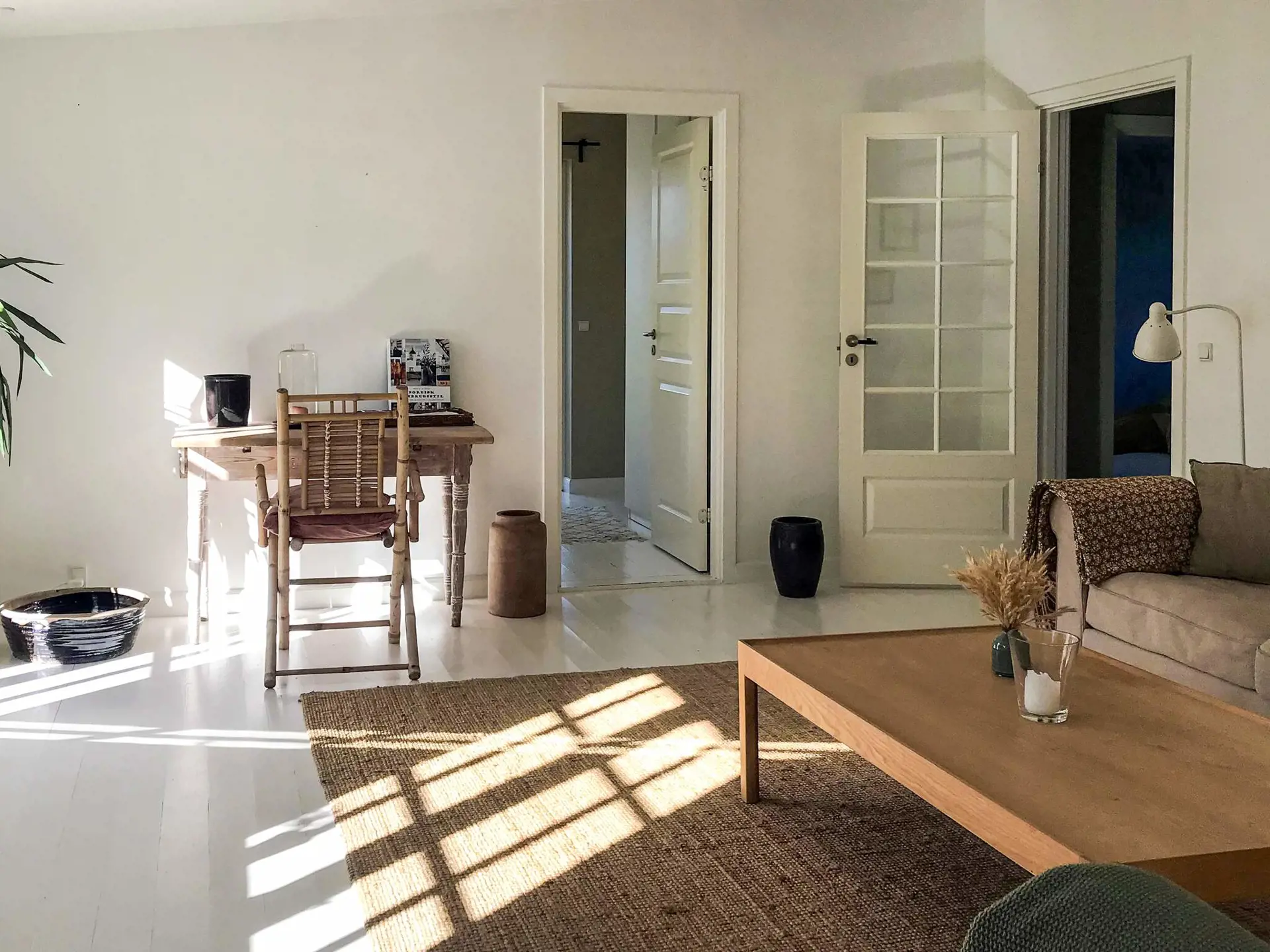 Ferienhaus mit schönem Grundstück und Terrasse in Strandnähe sowie Nähe zum Ferienort Gilleleje. Das Ferienhaus hat eine Küche mit Ceranfeld, Backofen, Kühl-/Gefrierschrank mit Eiswürfeln und Geschirrspüler. Das Wohnzimmer ist eher schlicht eingerichtet, in hellem, modernem Stil und mit TV, freiem WLAN sowie klimafreundlicher Wärmepumpe und gemütlichem Holzofen für kühlere Abende.