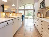 Ferienhaus in der Nähe von Smidstrup Strand. Im Haus Küche mit Cerankochfeld, Backofen, Mikrowelle, Kühl-/Gefrierschrank, Gefrierschrank und Geschirrspüler. Wohnzimmer mit TV und Gemütlichkeit vor dem Holzofen. Es gibt drei Schlafzimmer mit Doppelbett, dazu einen Hems oben unter dem Dach mit zwei zusätzlichen Schlafplätzen. Außerdem zwei Badezimmer und eine Waschmaschine im Haus.