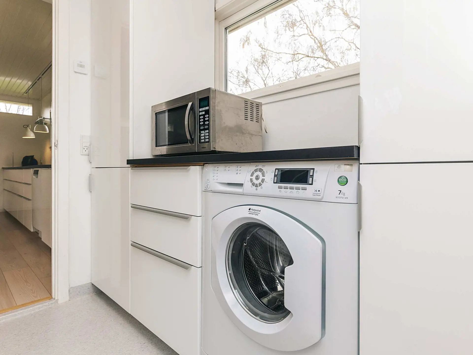 Das Haus enthält u.a. Eingang/Hauswirtschaftsraum mit Mikrowelle, Kühl-/Gefrierschrank und Waschmaschine. Schöne Wohnküche und großes Wohnzimmer mit Holzofen. Drei Schlafzimmer; zwei mit Doppelbett und ein drittes Zimmer mit 2 Einzelbetten. Duschbad und Gäste-WC.