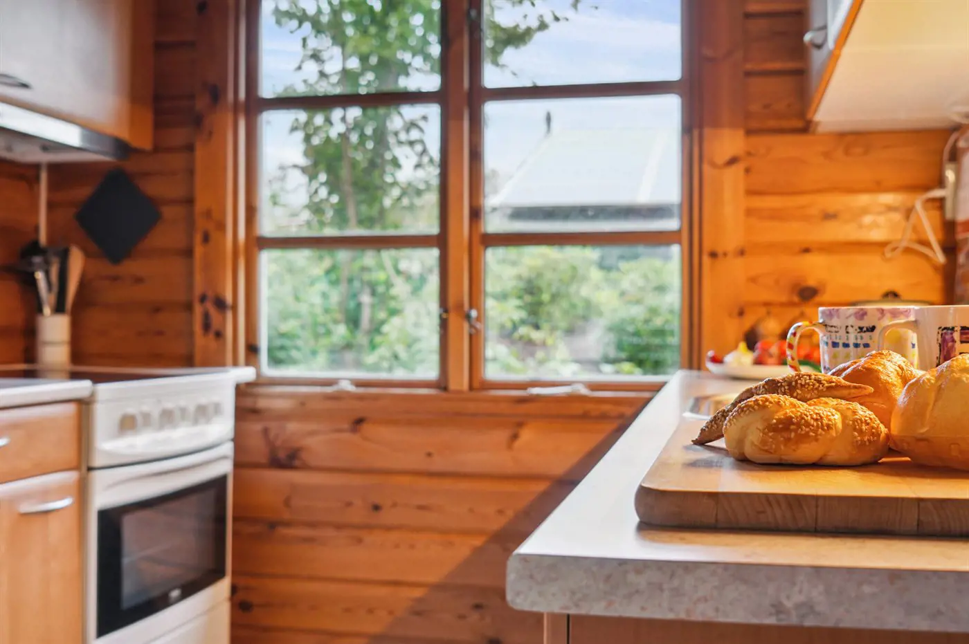 Zum Ferienhaus gehört ein neues Gästehaus (2025) mit Doppelbett, Etagenbett und eigenem Badezimmer.