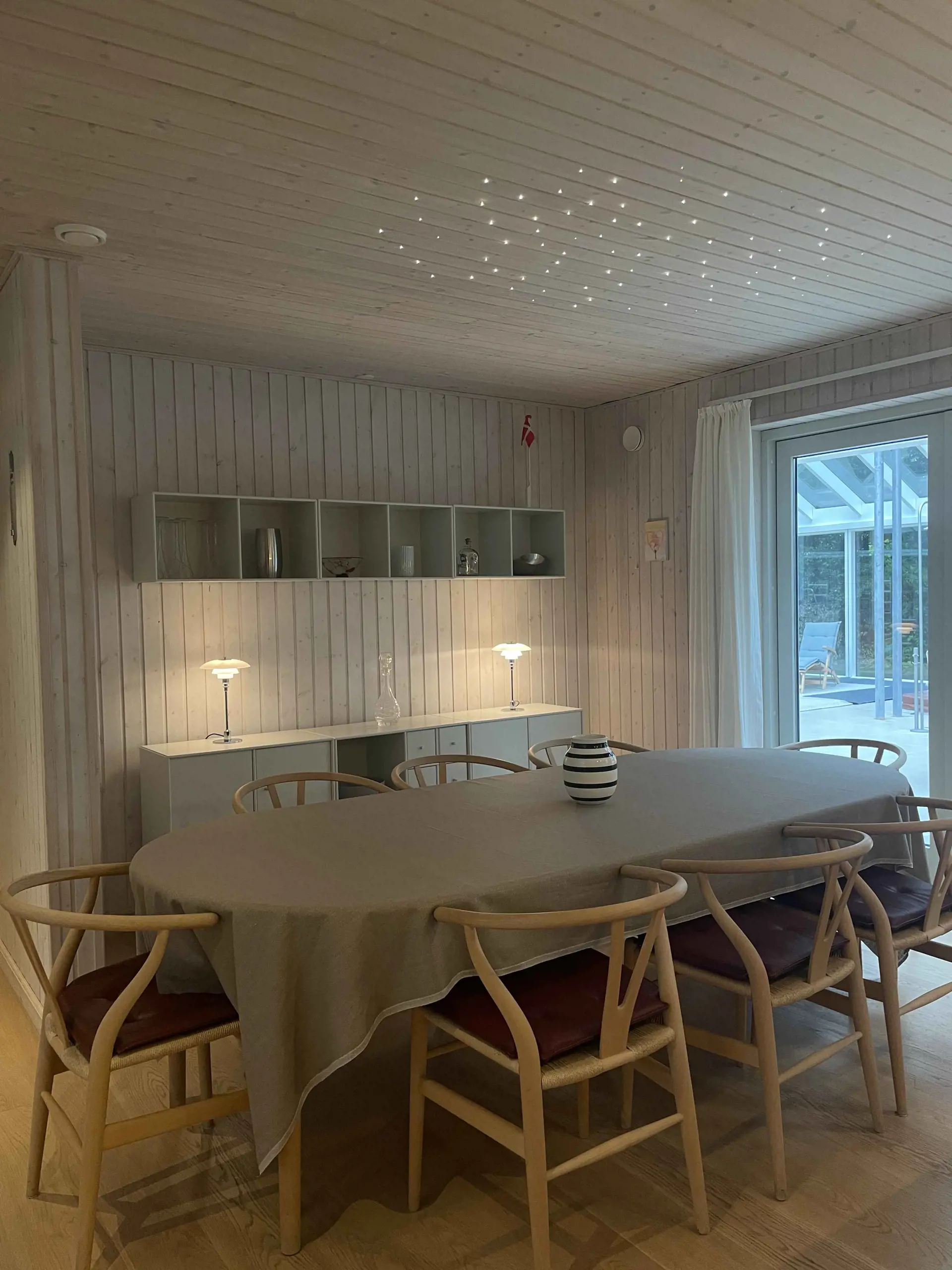 Innen ist das Haus komplett möbliert mit allem, was man braucht. Ein großer Esstisch bringt alle zu den Mahlzeiten zusammen, und Sofas und Liegestühle bieten Platz zum Entspannen. Es gibt ein TV-Zimmer, WLAN und klassische Brettspiele für ruhige Abende.