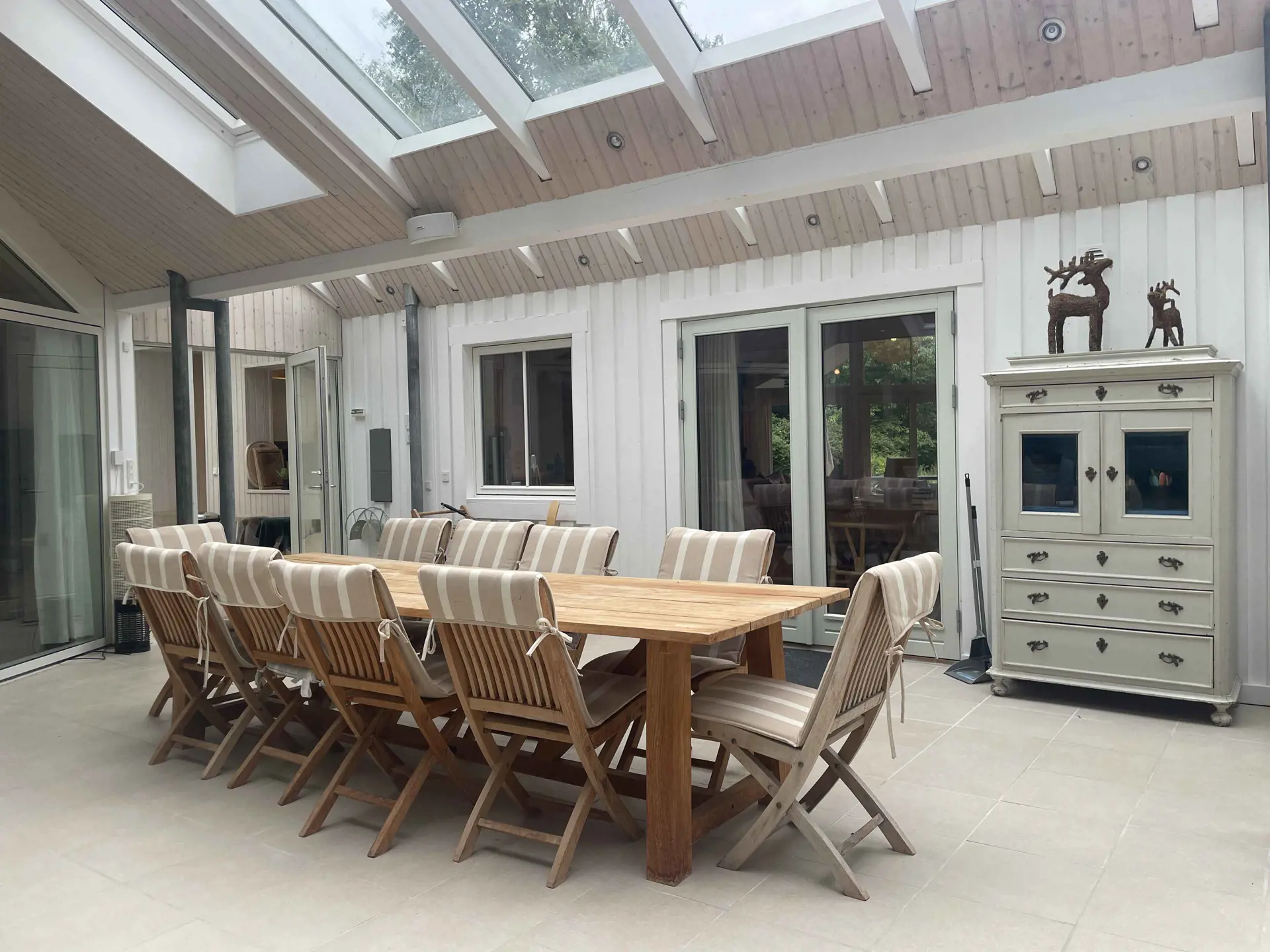 Das Haus liegt in einer ruhigen Umgebung mit viel Platz drinnen und draußen. Die große Terrasse, der Grillplatz und der gepflegte Garten laden zu Aktivitäten im Freien und langen Sommerabenden ein. Ein großzügiger Wintergarten verlängert den Tag, auch bei wechselhaftem Wetter.