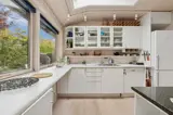 Das helle Wohnzimmer mit Kaminofen sorgt für Wärme und Gemütlichkeit an kühleren Abenden. Der offene Grundriss verbindet Wohn- und Küchenbereich, sodass gemeinsame Mahlzeiten zum Mittelpunkt des Tages werden. Eine Wärmepumpe sorgt das ganze Jahr über für ein angenehmes Raumklima.