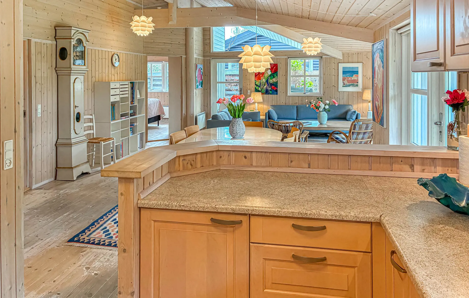 Dieses gemütliche Haus ist wie geschaffen für eine Auszeit vom Alltag. Viel helles Tageslicht, eine große Sofalandschaft und liebevoll ausgesuchte Details schaffen eine Atmosphäre, in der Sie schnell in den Urlaubsmodus finden. Lehnen Sie sich mit einer Tasse Kaffee zurück, verbringen Sie einen Abend vor dem Fernseher oder zaubern Sie gemeinsam leckere Mahlzeiten in der modernen Küche.