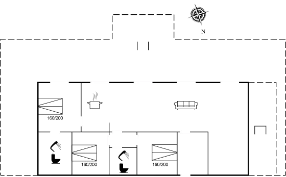 Die Raumaufteilung eignet sich gut für Familien und Paare, die viel Platz wünschen und sowohl die gemeinsame Zeit als auch die Privatsphäre schätzen. Das Haus ist sinnvoll aufgeteilt mit Schlafbereichen und Badezimmern, sodass du ohne Probleme mit mehreren Personen unter einem Dach wohnen kannst.