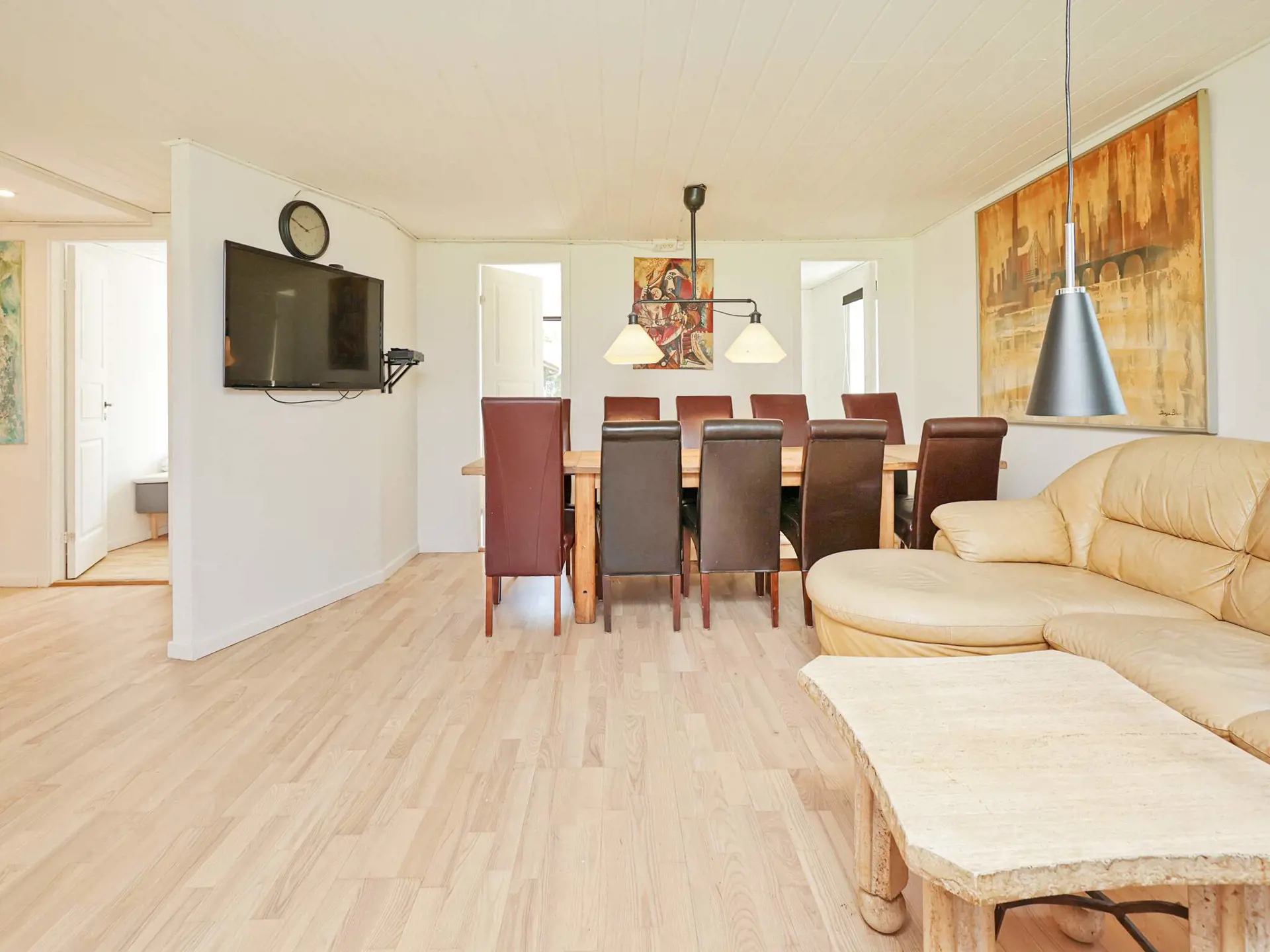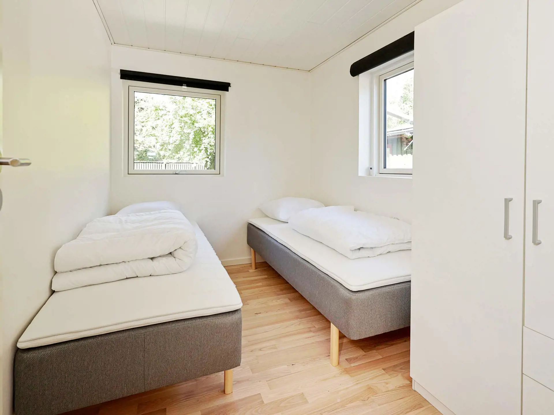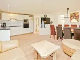 Die 104 m2 große Wohnfläche besteht aus einem offenen Küchen-/Wohnbereich mit Ess- und Sitzecke sowie aus sechs Schlafzimmern; vier Zimmer mit je zwei Einzelbetten, zwei weitere mit je einem Einzelbett. Außerdem zwei geräumige Bäder mit Dusche, ein Gäste-WC sowie ein praktischer Hauswirtschaftsraum mit Waschmaschine, Wäschetrockner und Spüle im Haus.