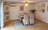 Lassen Sie sich von der behaglichen Atmosphäre des Innenbereichs empfangen. Machen Sie es sich in der warmen und einladenden Stimmung im Wohnbereich auf dem Sofa und den Sesseln bequem und genießen Sie entspannte Abende bei knisterndem Feuer im Kaminofen. Nutzen Sie den Esstisch für gemeinsame Mahlzeiten, Gespräche oder eine entspannte Planung Ihrer Ausflüge, und bereiten Sie in der kompakten Küche Ihre Lieblingsgerichte zu.