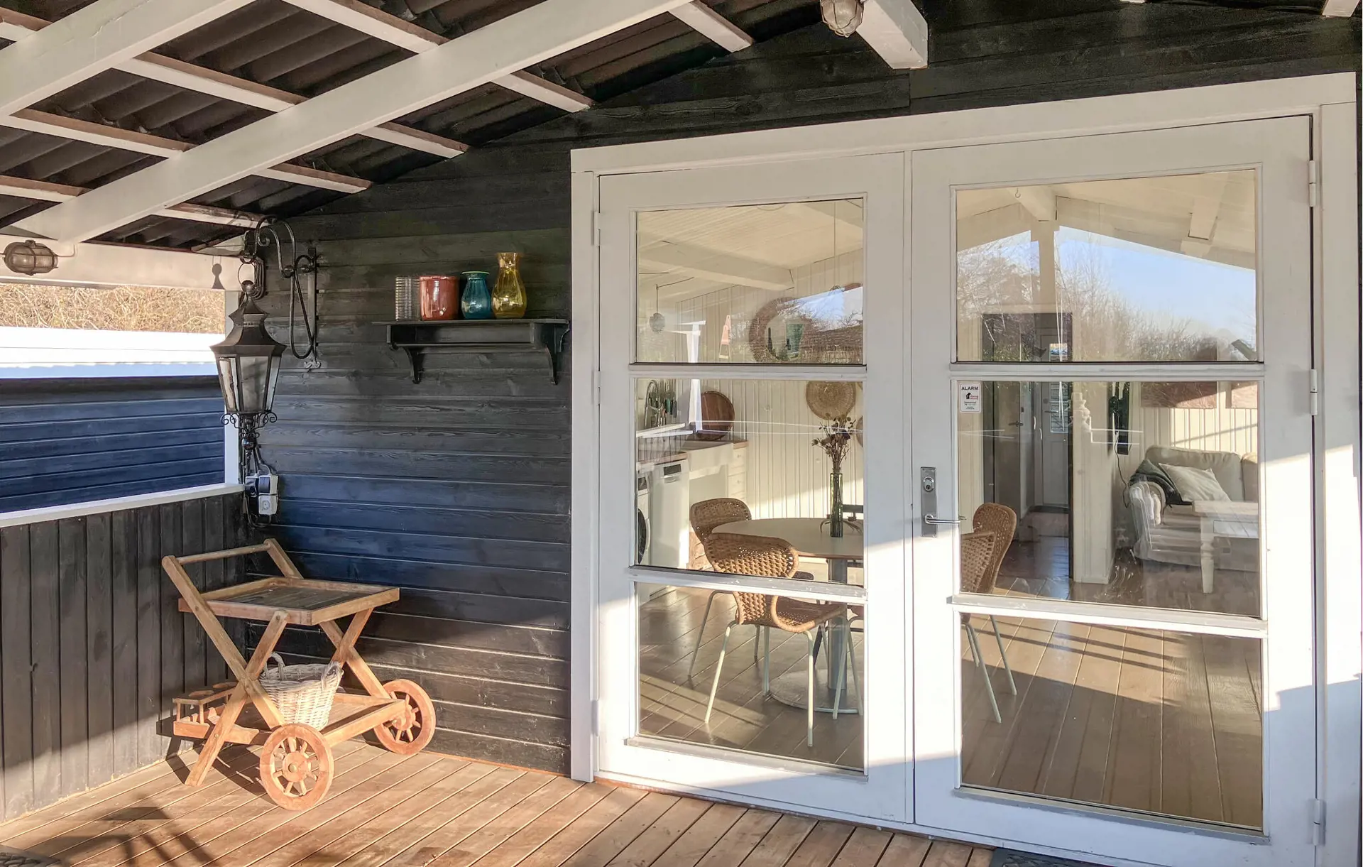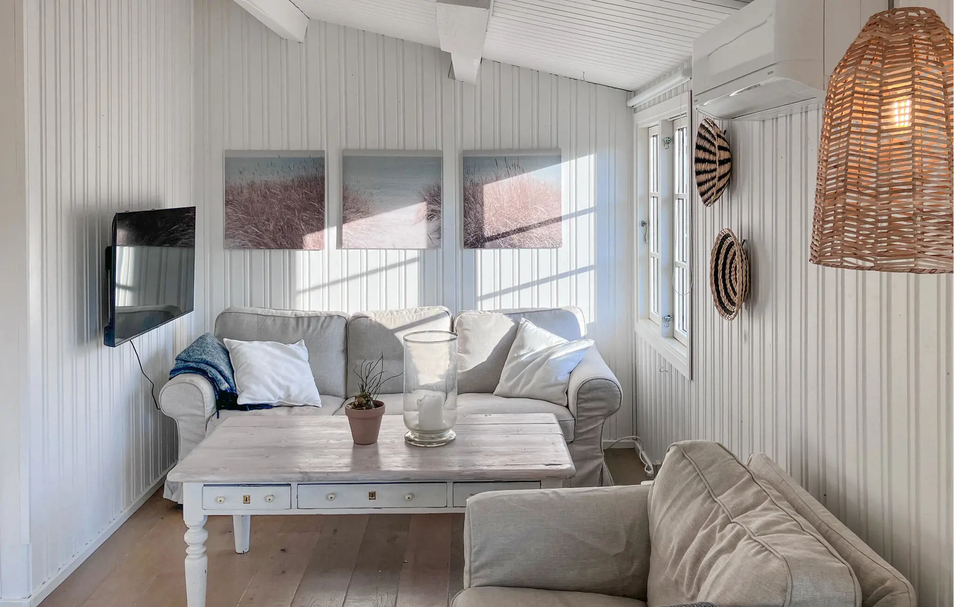 Betreten Sie den freundlichen Innenbereich und fühlen Sie sich sofort willkommen. Nehmen Sie im gemütlichen Wohnraum mit weichem Sofa, TV und hellen Holzwänden Platz und genießen Sie entspannte Stunden. Bereiten Sie Ihre Mahlzeiten in der praktisch ausgestatteten Küche mit viel Arbeitsfläche und praktischem Essplatz zu, den Sie für gemeinsame Mahlzeiten oder Spieleabende nutzen können.