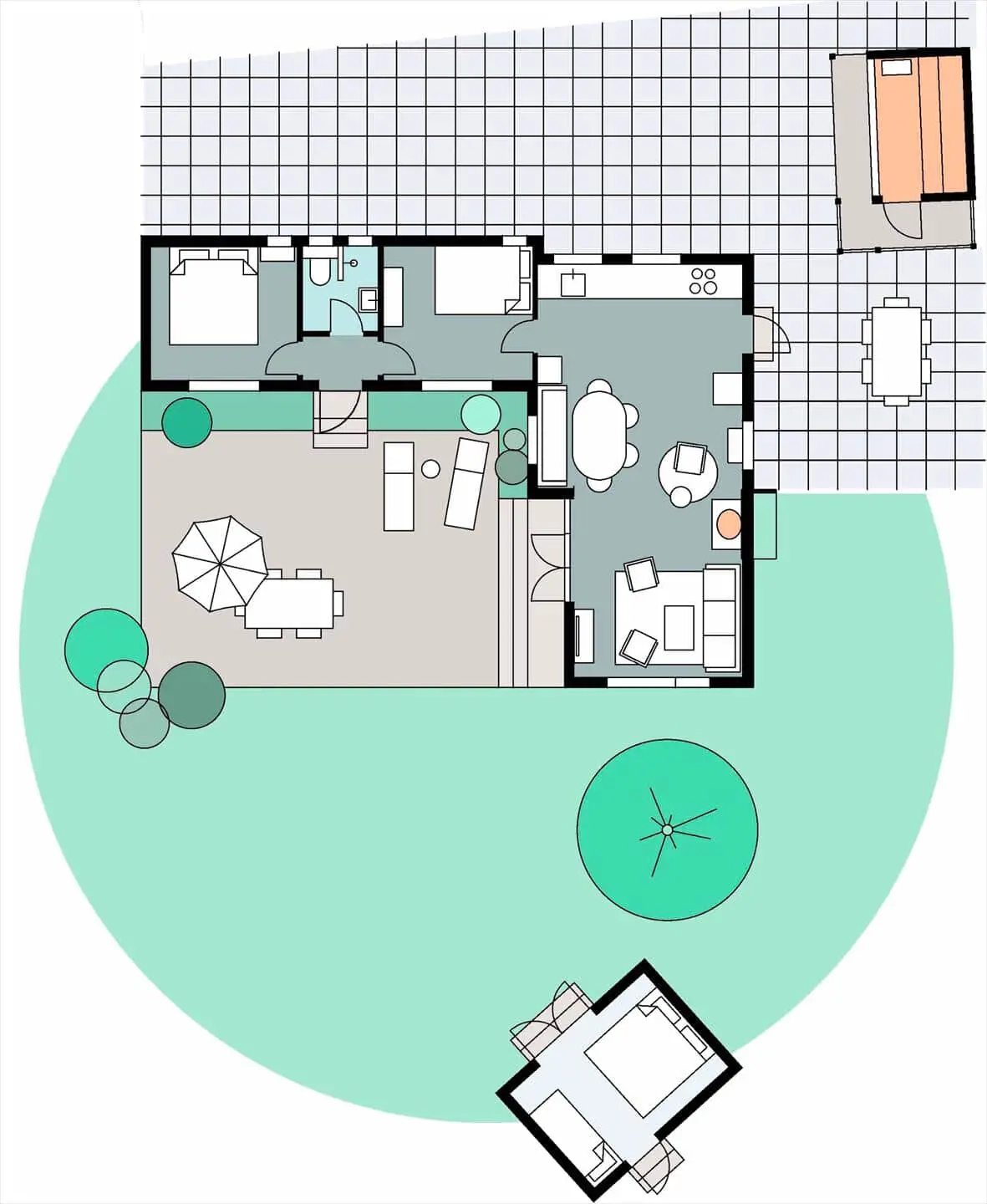 Diese Unterkunft hat eine Fläche von 68 m², einen 10 m² großen Annex und befindet sich auf einem 1.966 m² Grundstück.