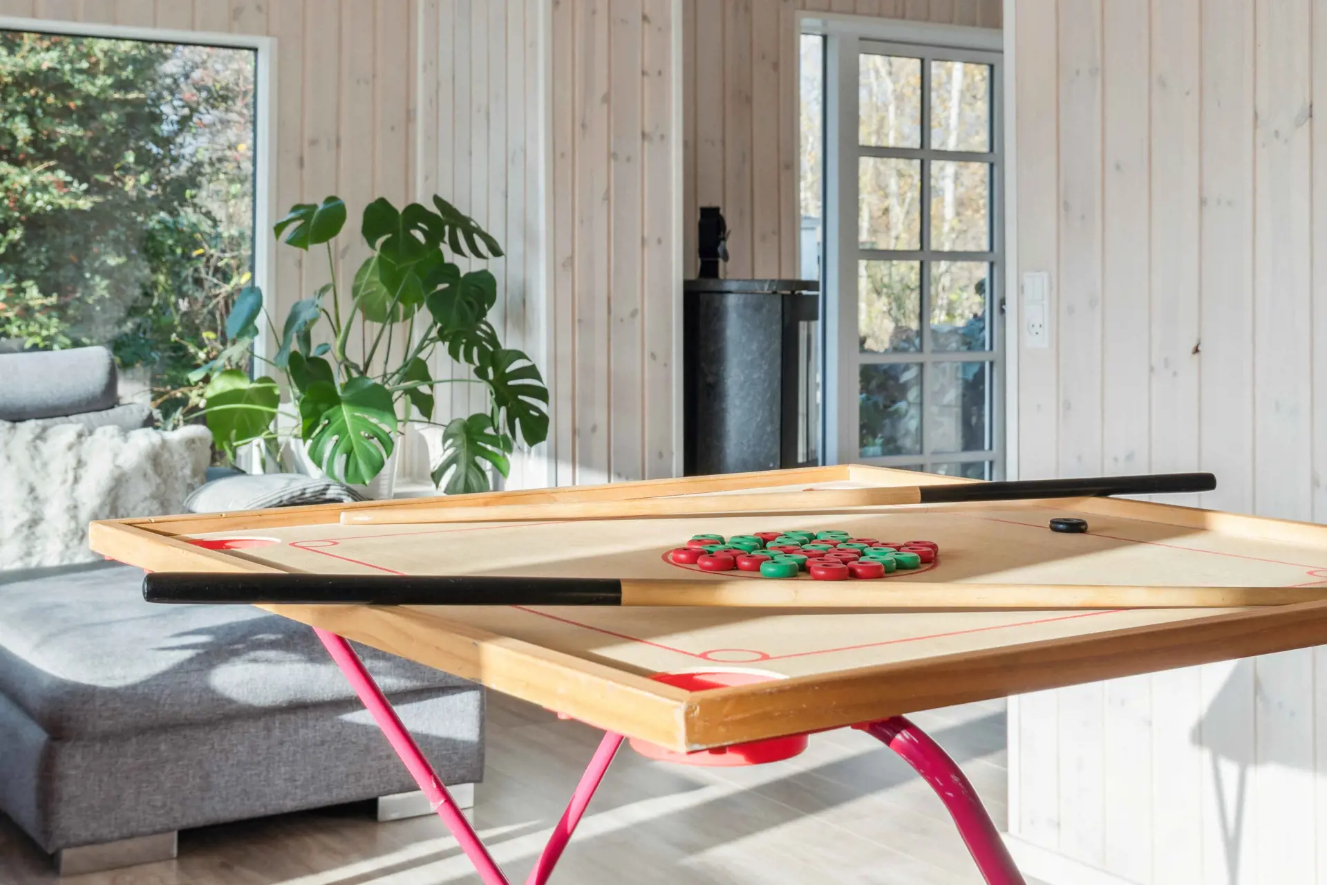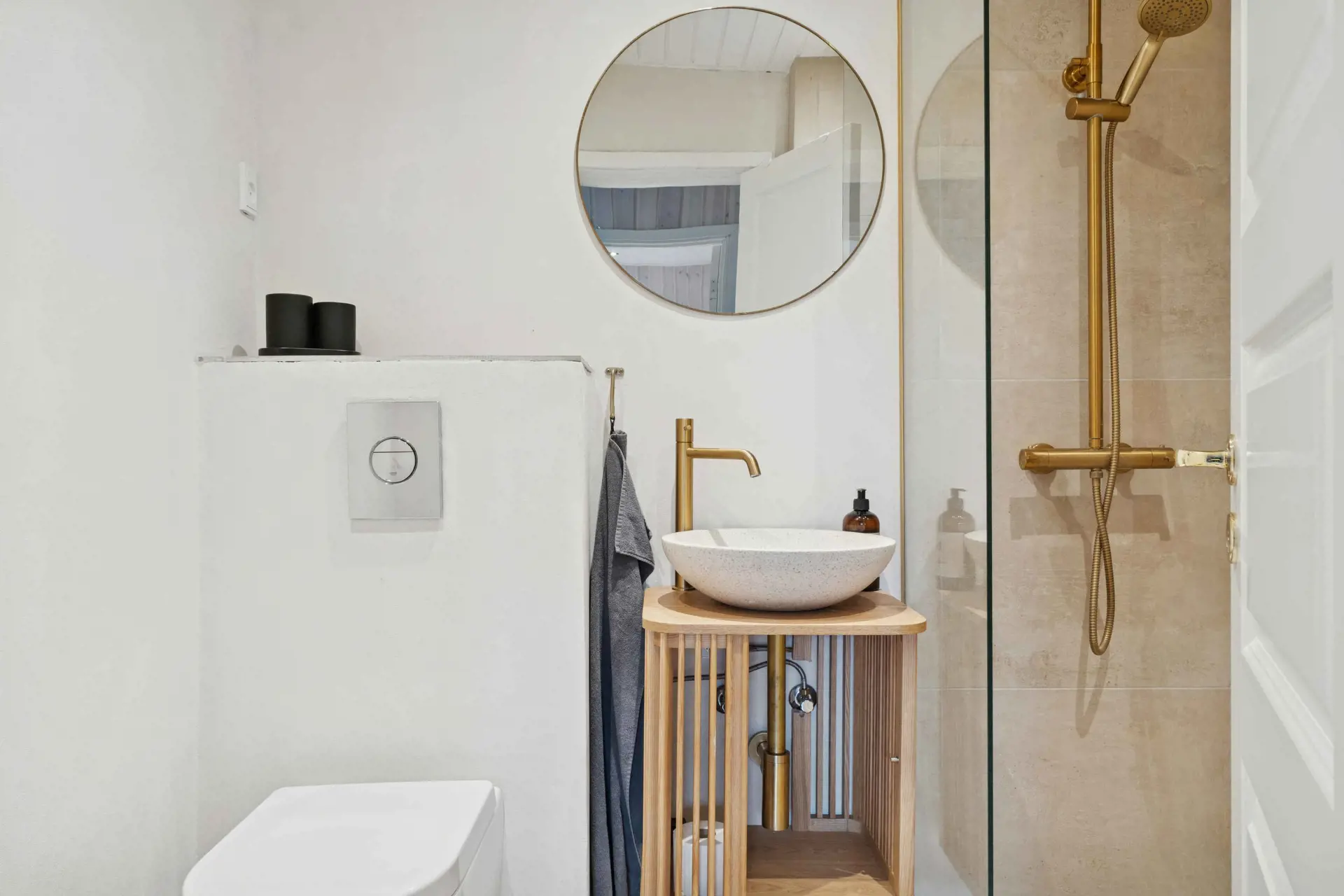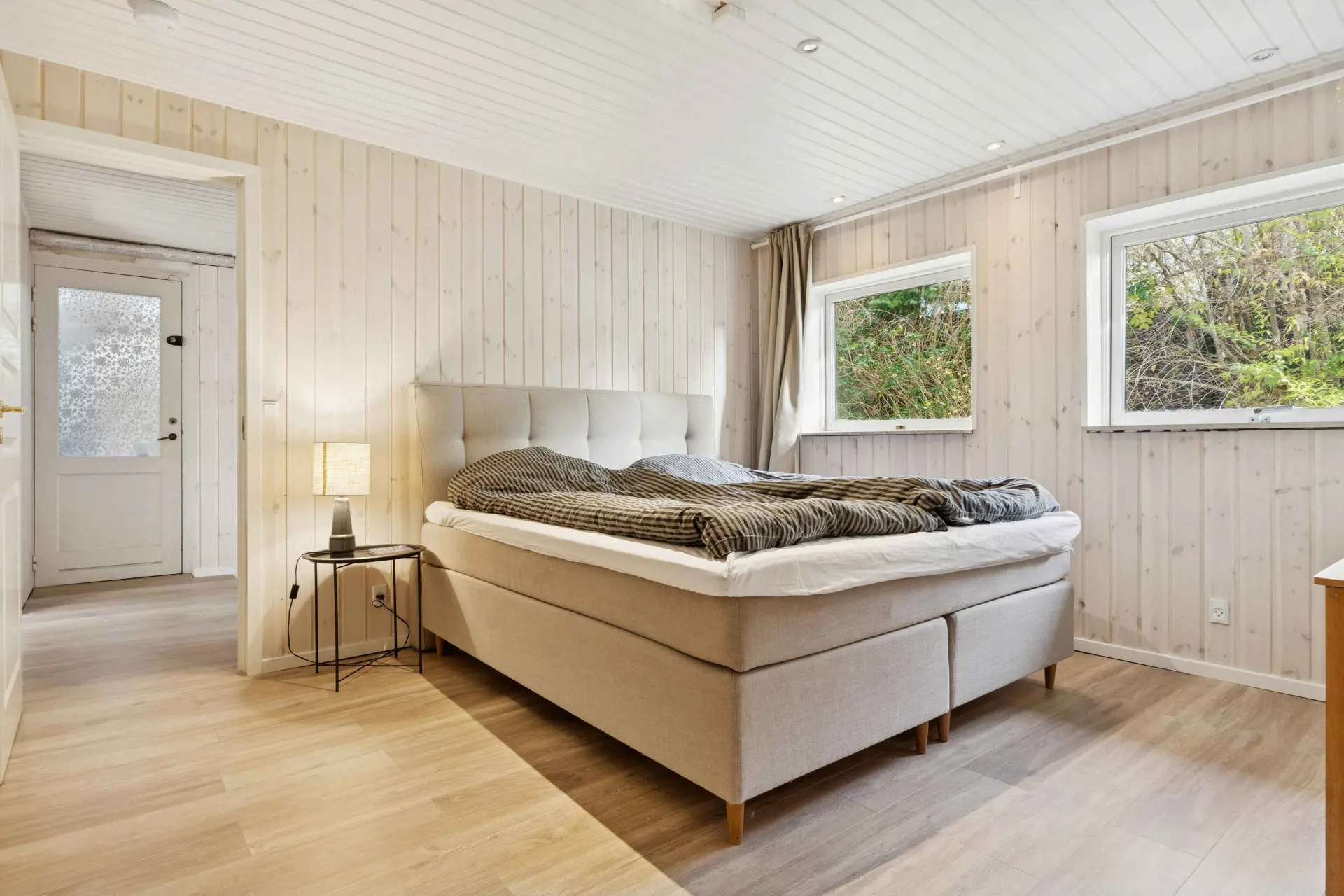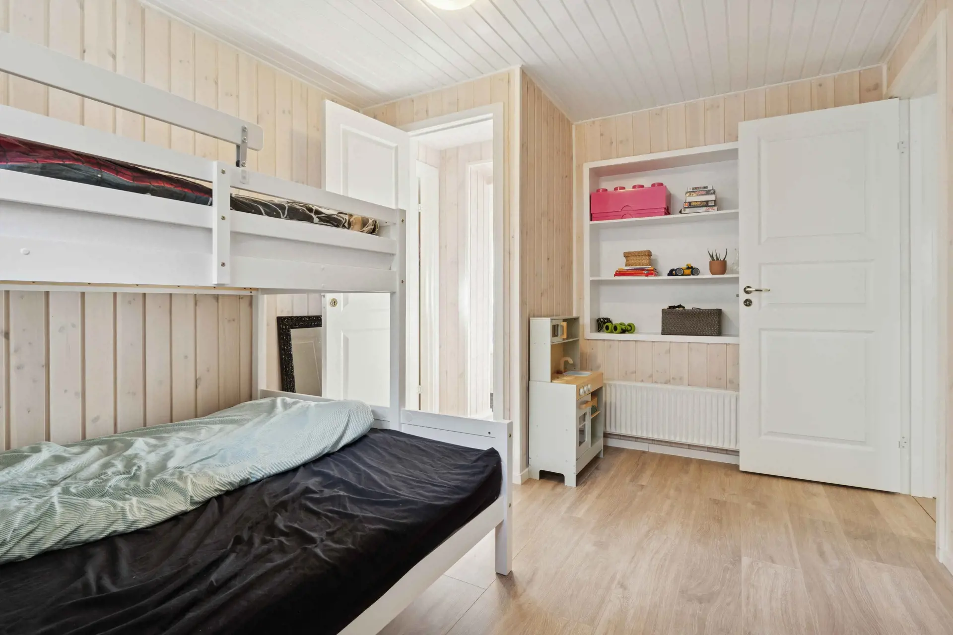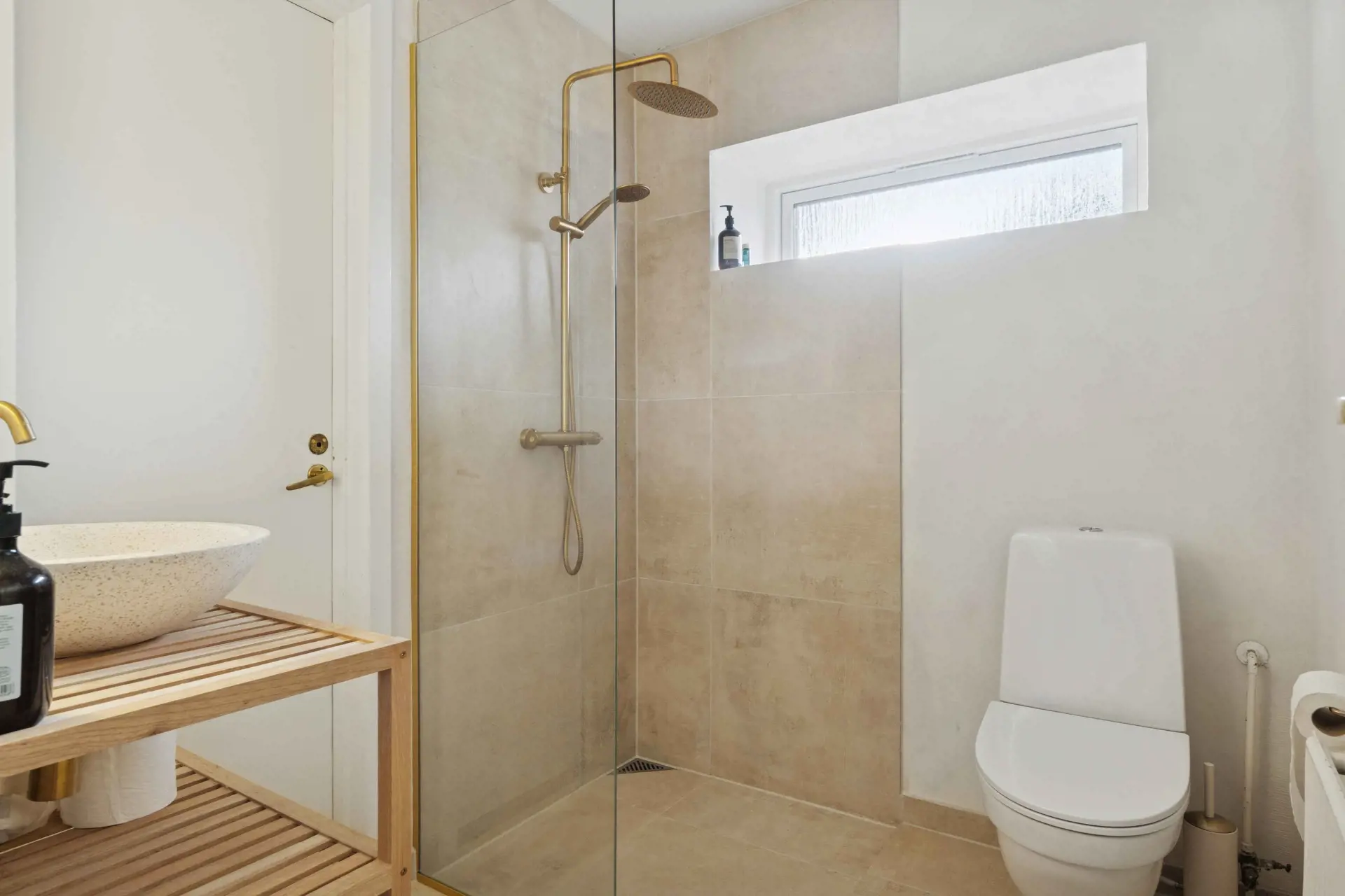 Das Haus bietet zwei moderne Badezimmer mit Dusche sowie drei Schlafzimmer mit insgesamt sieben Schlafplätzen. Die Einrichtung ist schlicht und funktional, ideal für Familien und Freundesgruppen.