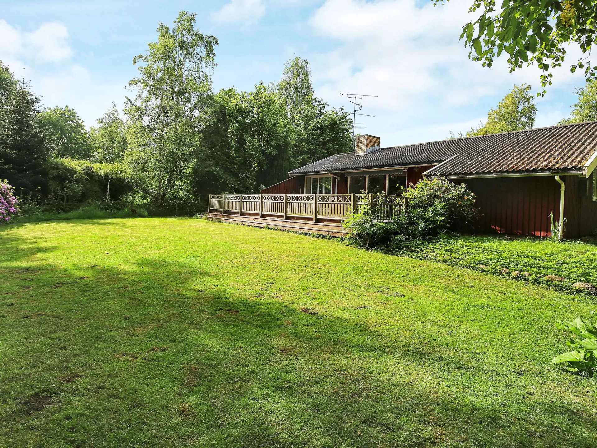 Hier im beliebten Ferienort Rågeleje finden Sie einen schönen Rahmen für einen entspannten Familienurlaub in Dänemark. Das Ferienhaus liegt auf einem schön geschützten Rasengrundstück und bietet eine leicht erhöhte Holzterrasse für Sommertage und Grillabende. Währenddessen können die Kinder sich bei Spiel und Spaß auf dem Rasen austoben. Gleich angrenzend an das Haus befindet sich ein friedliches Gewässer mit reichem Vogelleben.