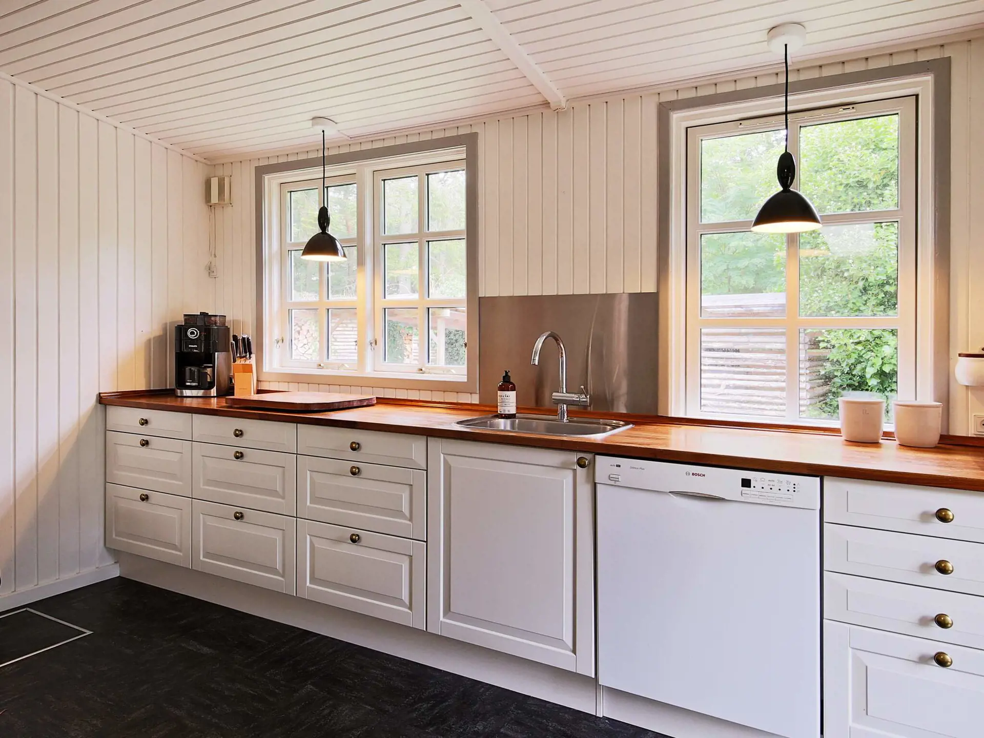 In Rågeleje und in Strandnähe finden Sie dieses Ferienhaus. Es steht auf einem schönen Naturgrundstück. Eingang über die verglaste Veranda mit Tischkicker. Großer Küchen-/Wohnbereich für das Familienleben, ausgestattet mit u.a. Cerankochfeld, Dunstabzugshaube, Kühl-/Gefrierschrank und Geschirrspüler. Wohnzimmer zum Entspannen mit TV und WLAN. Drei Schlafzimmer im Haus, aufgeteilt in zwei mit je einem Doppelbett, das dritte mit Etagenbett für zwei Personen. Badezimmer mit Dusche, Waschmaschine und Wäschetrockner. Beheizt wird das Haus mit klimafreundlicher Luft-Luft-Wärmepumpe und einem Holzofen.