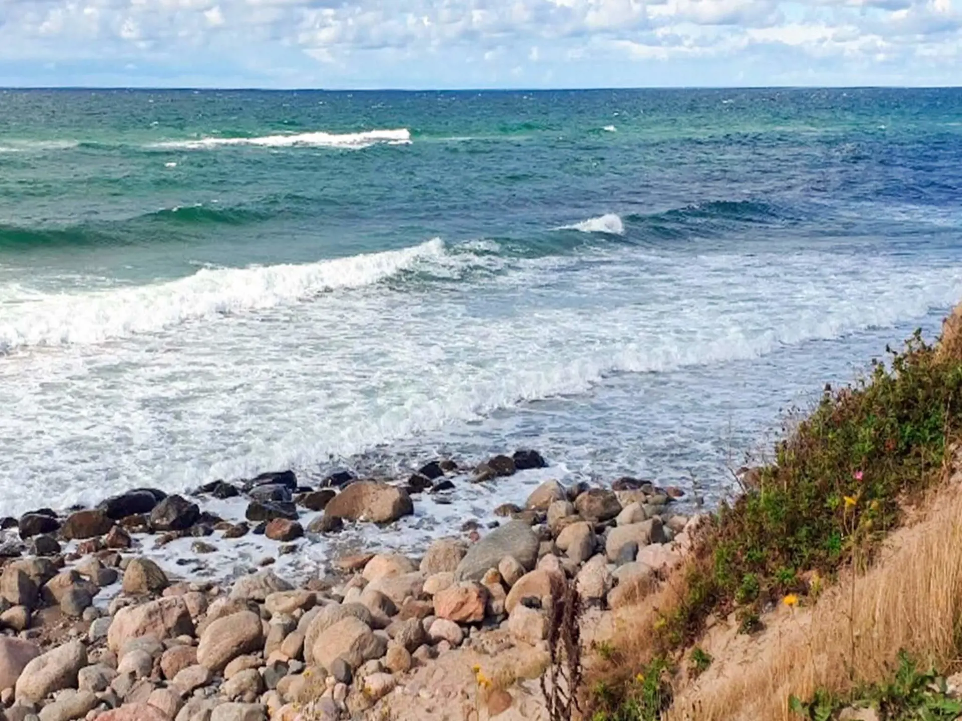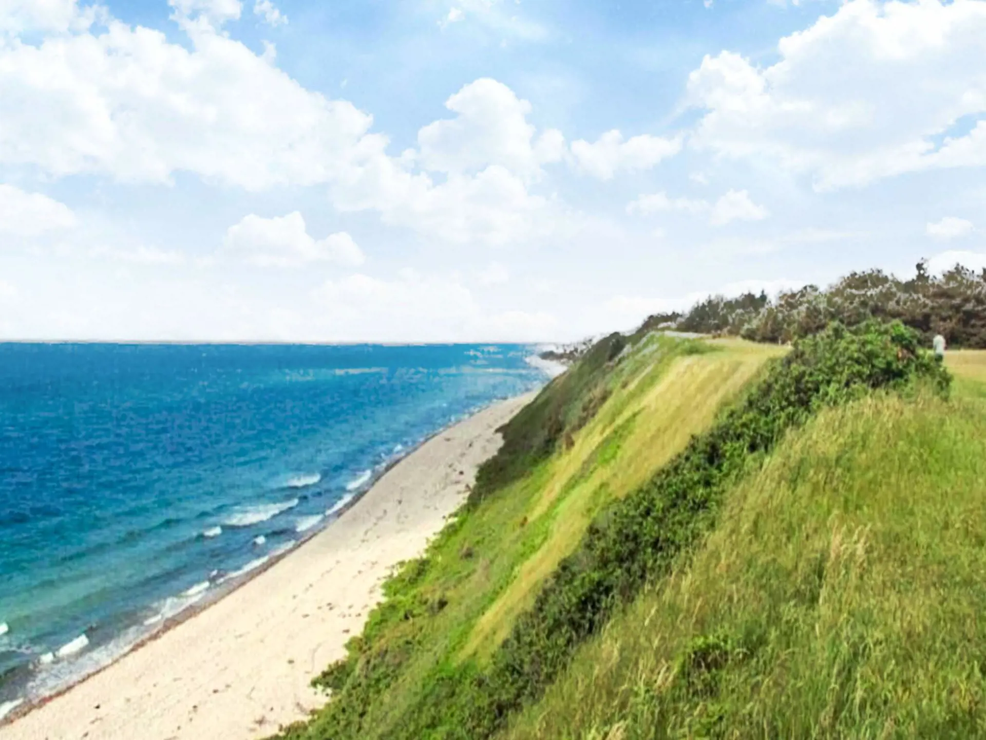 Im Wohnzimmer klimafreundliche Wärmepumpe sowie gemütlicher Holzofen, auf dem Grundstück zudem eine Feuerstelle. Es gibt auch eine überdachte Terrasse mit Gasgrill, zudem praktische Außen-Dusche am Haus. Sie wohnen strandnah. Das Naturgrundstück ist eingezäunt.