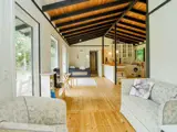 Vom Wohnzimmer aus hat man direkten Zugang zu einer großen Holzterrasse mit Blick in den Garten. Hier zünden Sie den Grill an, genießen die Sonne und die Stille. Der Strand von Rågeleje ist mit seinen bonbonfarbig gestreiften Strandhütten wahrscheinlich der traditionellste Strand an der dänischen Nordküsteseeküste.