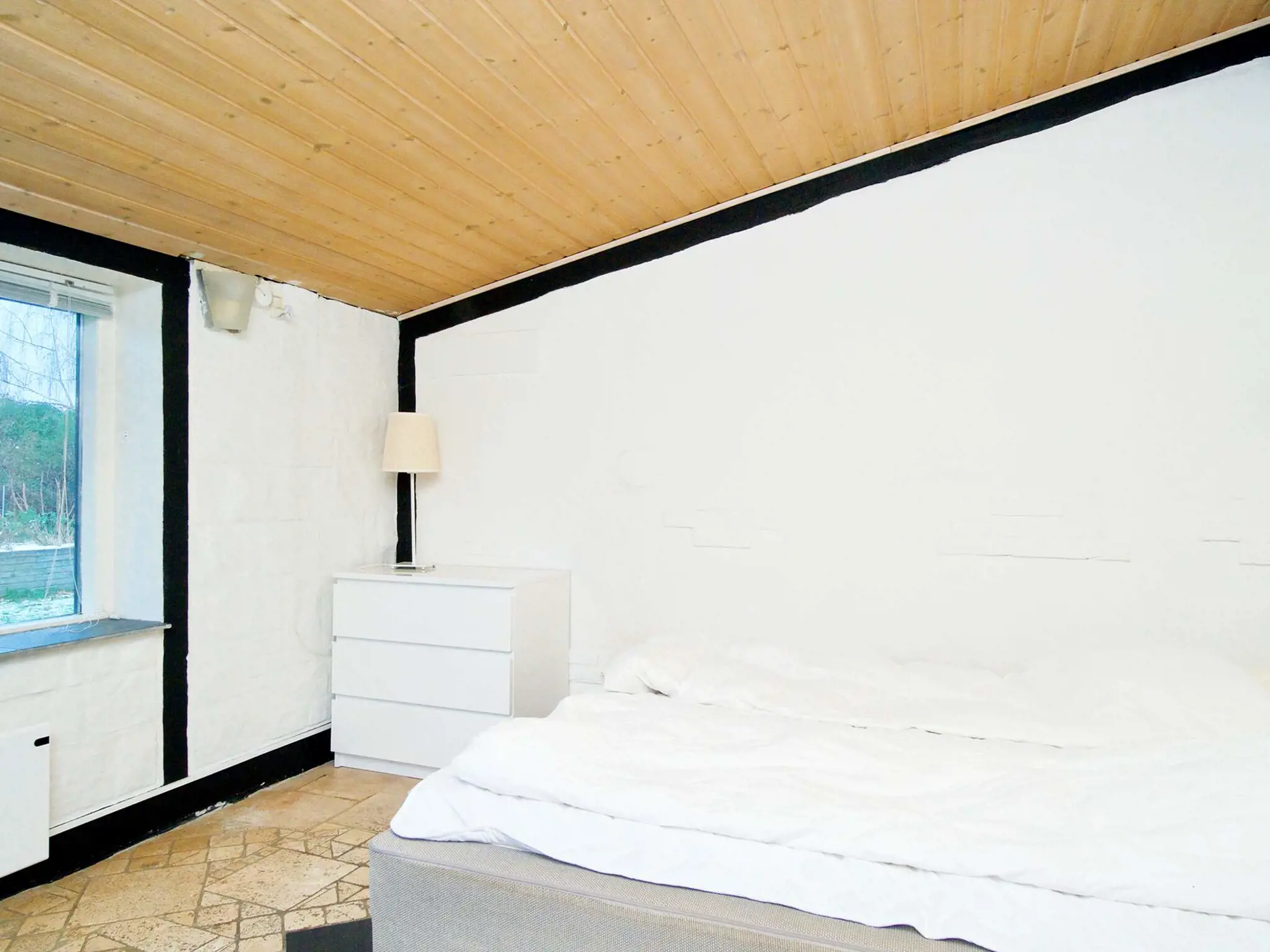 Das Haus selbst besteht aus einer individuell gestalteten, offenen Küche, einem Schlafzimmer mit Doppelbett und Dachboden/Hems sowie einem weiteren Schlafzimmer mit Doppelbett. Außerdem TV-Stube mit doppelter Schlafcouch für zwei Personen im Haus. Die Raumhöhe ist luftig, die Decke offen bis zum First. Die dicken Dachbalken dazwischen vermitteln eine besonders gemütliche und rustikale Atmosphäre. Es gibt eine große Terrasse von 50 m²