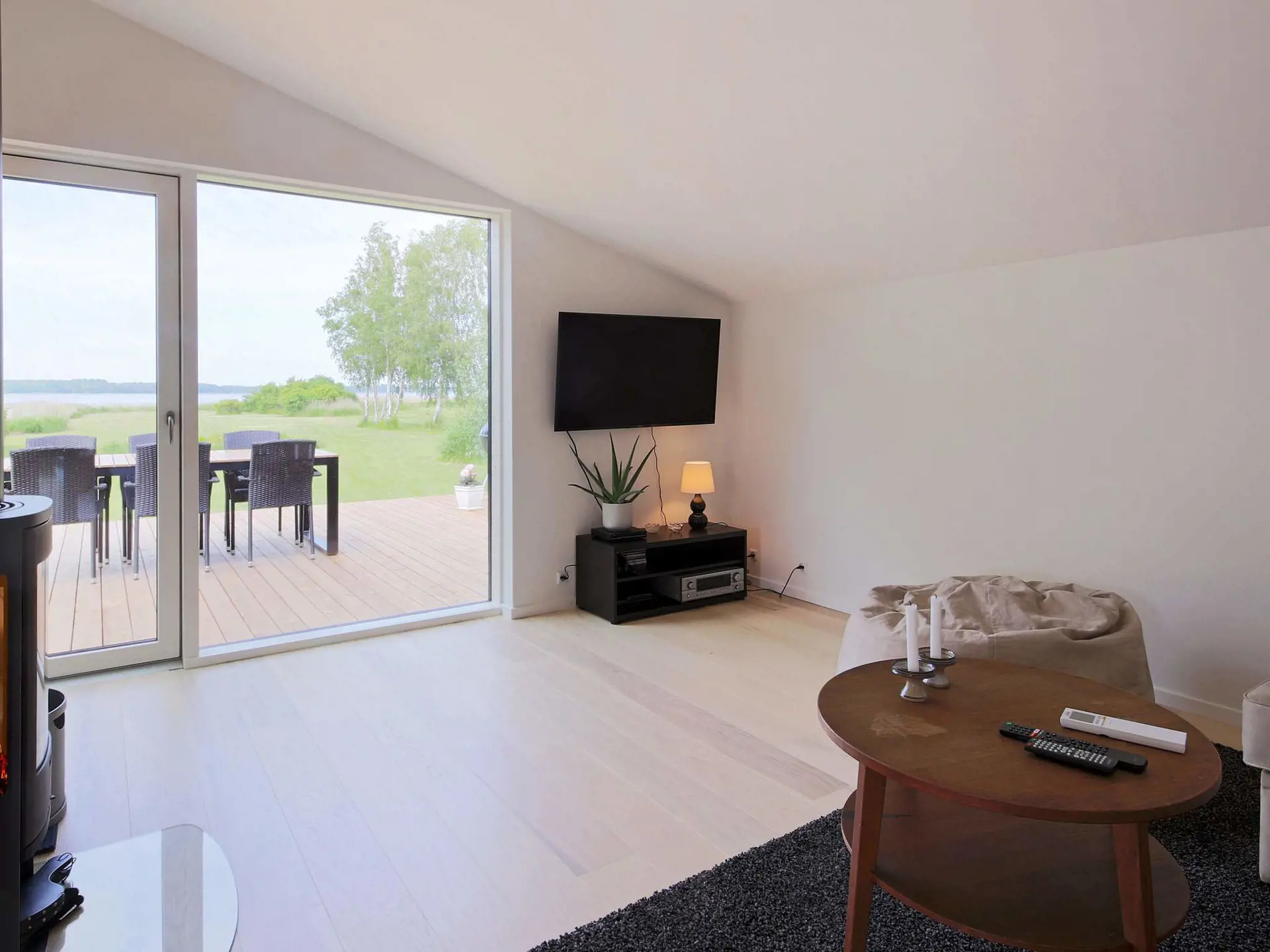 Ganz gleich ob Sie sich im Wohnzimmer oder draußen auf der Terrasse aufhalten, der Blick kann frei über das Wasser schweifen. Eine erstklassige Lage! Im Außenbereich stehen mehrere Sitzplätze zur Auswahl, die man je nach Sonnenstand und Tageszeit nutzen kann.