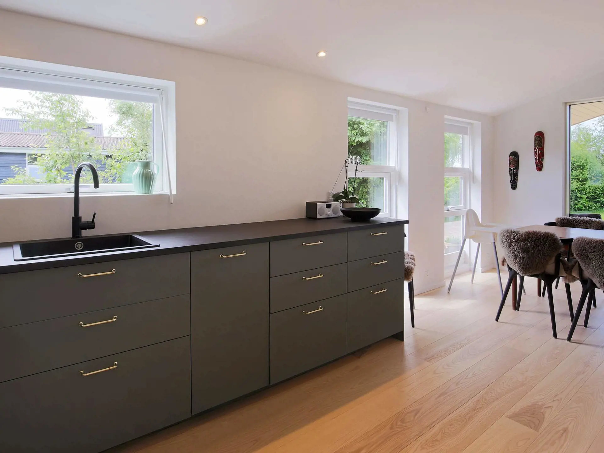 Das für die Saison 2021 komplett renovierte Ferienhaus bietet einen offenen Küchen-/Wohnbereich für das Familienleben mit neuer Kücheneinrichtung sowie bis zu 3 m luftiger Deckenhöhe zum First. Es hat auch zwei Schlafzimmer mit jeweils einem Doppelbett und ein attraktives Badezimmer. WLAN sowie TV mit Chromecast zum Streamen eigener Anbieter sowie Netflix vorhanden.