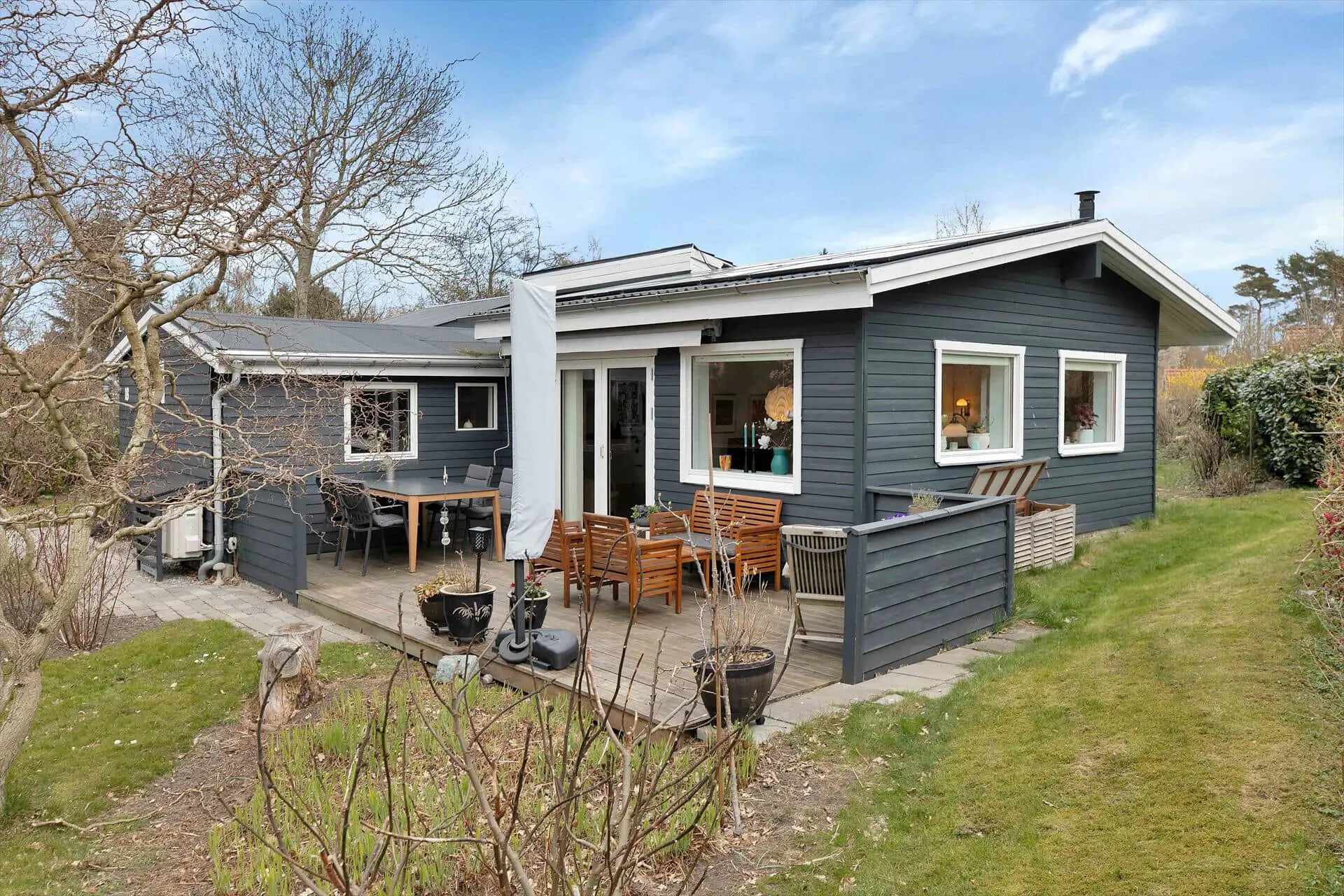 Das Ferienhaus ist in einem sehr beliebten und ruhigen Gebiet gelegen. Die beiden Terrassen machen es möglich, fast immer eine windgeschützte Ecke zu finden, obwohl es ein bisschen windig sein kann. Die Terrassen sind natürlich auch hier, wo man ganz einfach den Sommer und die Mahlzeiten, die auf dem Grill zubereitet werden, genießt, während die Kinder in dem großen Garten mit Trampolin, Schaukel und Platz für Ballspiel sich tummeln.