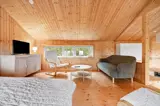 Betreten Sie dieses 2025 neu erbaute Haus, das vollständig aus Holz gefertigt ist, um sich harmonisch in die Umgebung einzufügen. Das Haus verfügt über eine offene Küche/Essbereich und ein Wohnzimmer, das zwei Stufen höher liegt und über einen Doppelschlafplatz sowie eine fantastische Aussicht auf den Isefjord bietet.
