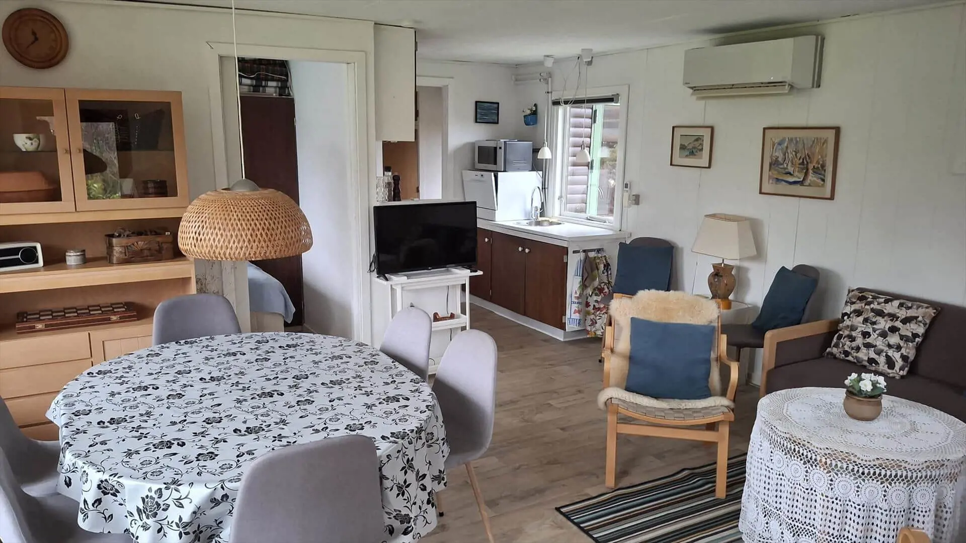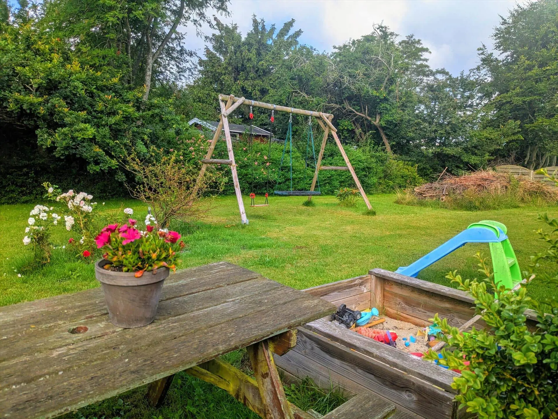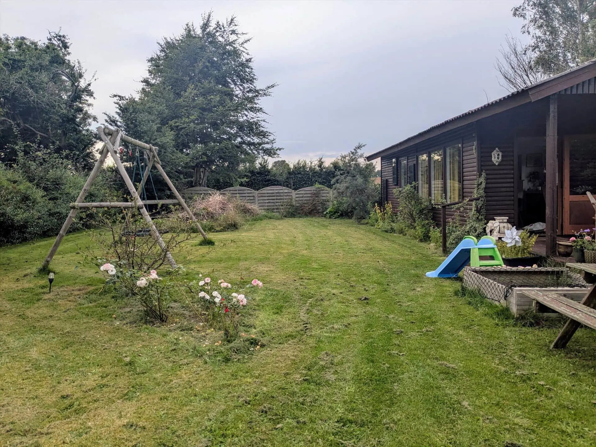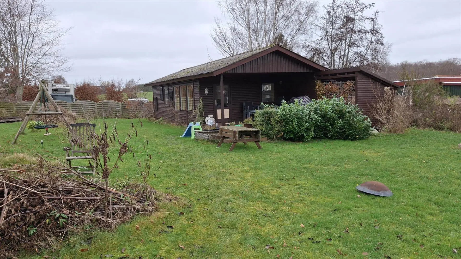 Diese Unterkunft hat eine Fläche von 50 m² und befindet sich auf einem 800 m² Grundstück, u.a. mit Schaukel, Sandkasten und Trampolin.