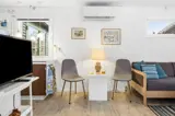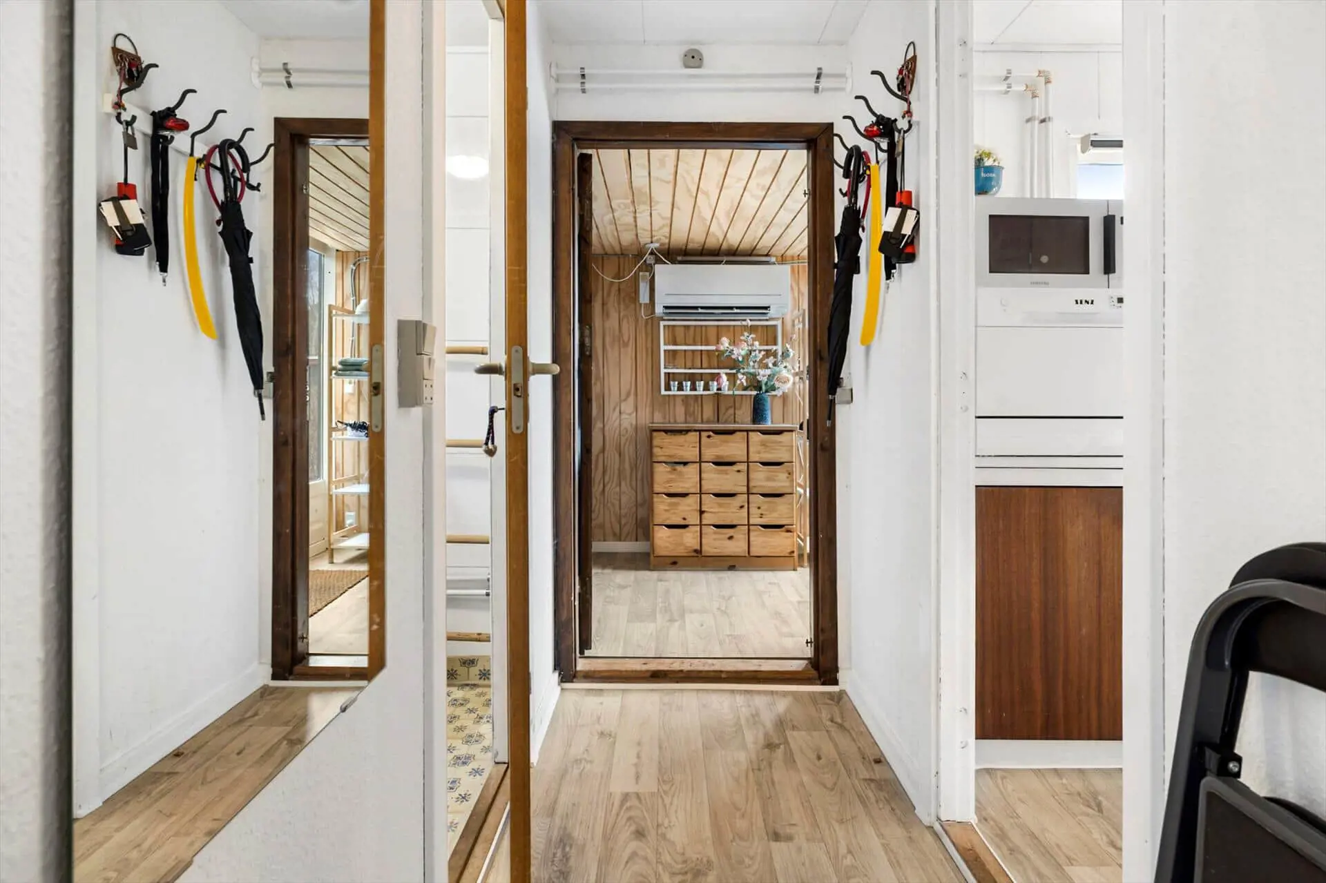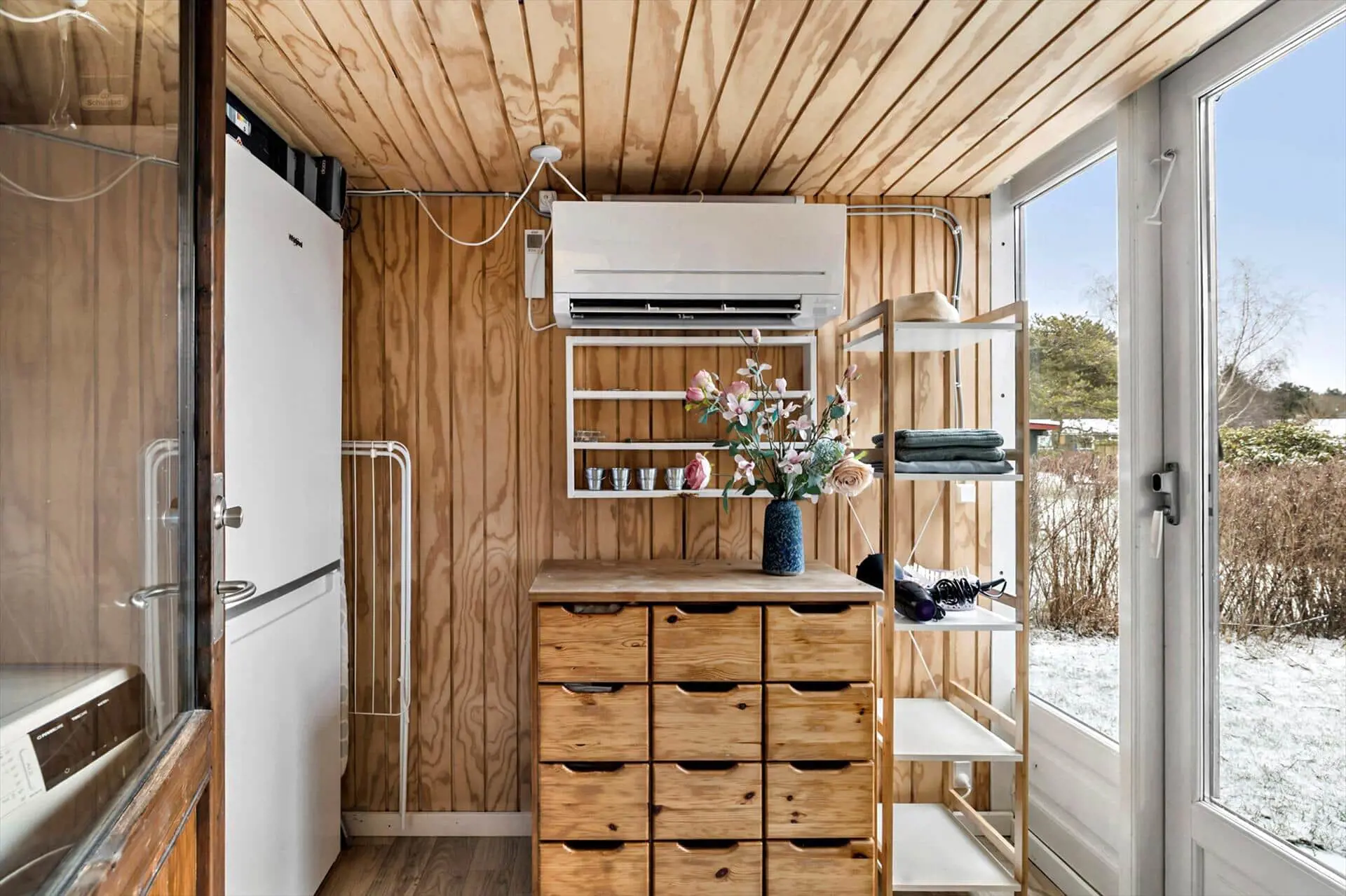 Hier treffen Sie sich im offenen Wohn-, Ess- und Küchenbereich. Hier können Sie spielen, kochen und, falls das Wetter es nicht zulässt, im Gemeinschaftsraum essen. Außerdem gibt es eine Eingangshalle, ein Badezimmer mit Dusche und zwei Schlafzimmer.