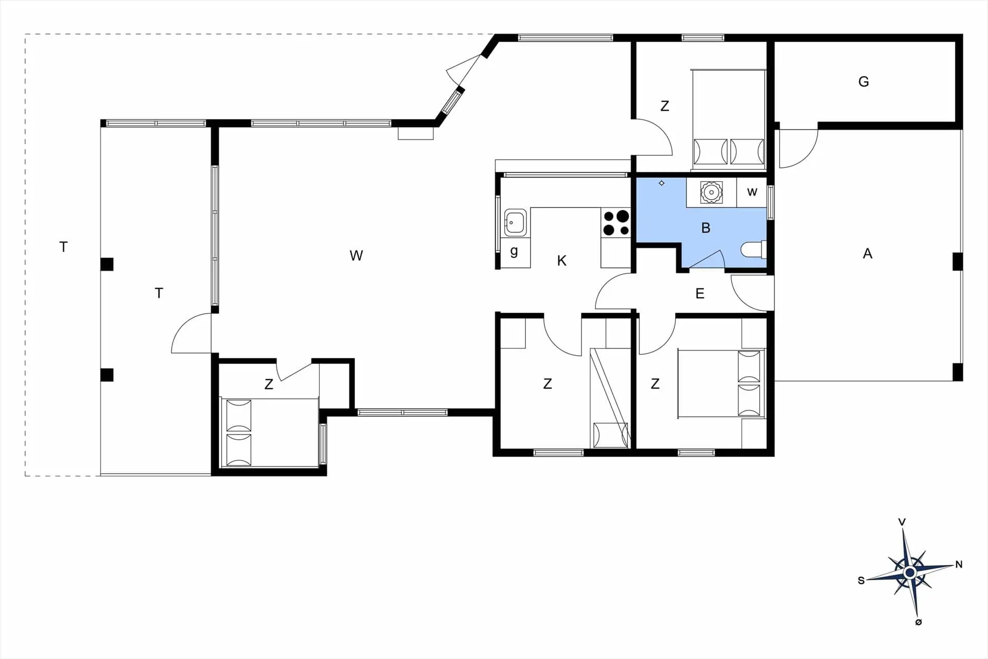 Das Ferienhaus wirkt hell, einladend und gut aufgeteilt. Die offene Küche mit angrenzendem Wohnzimmer ist der Treffpunkt, wo die Erlebnisse des Tages bei einem guten Abendessen besprochen werden, bevor man sich mit einem guten Buch oder einem Film auf dem Sofa entspannt. Das Haus verfügt über 4 schöne Schlafzimmer.
