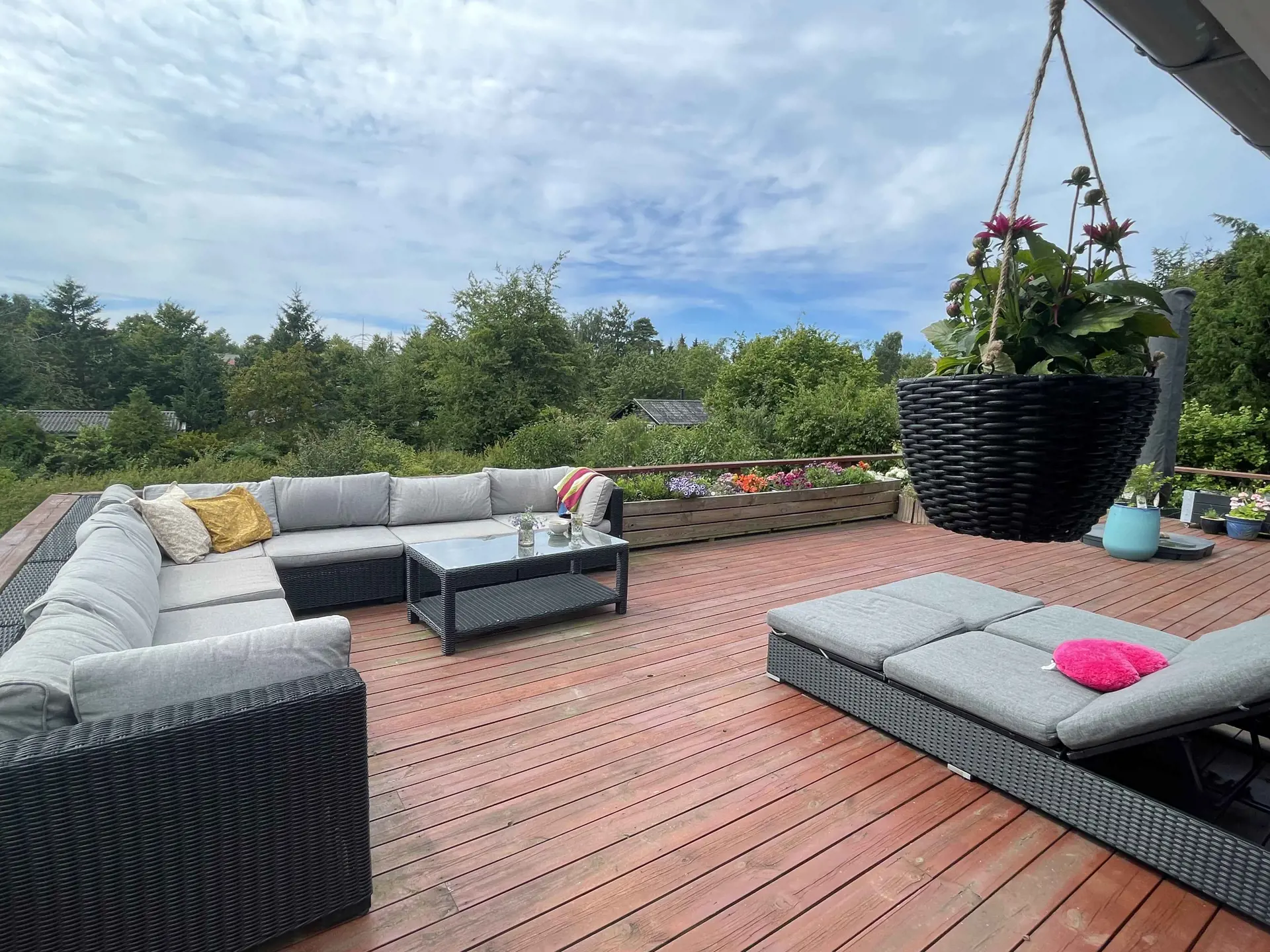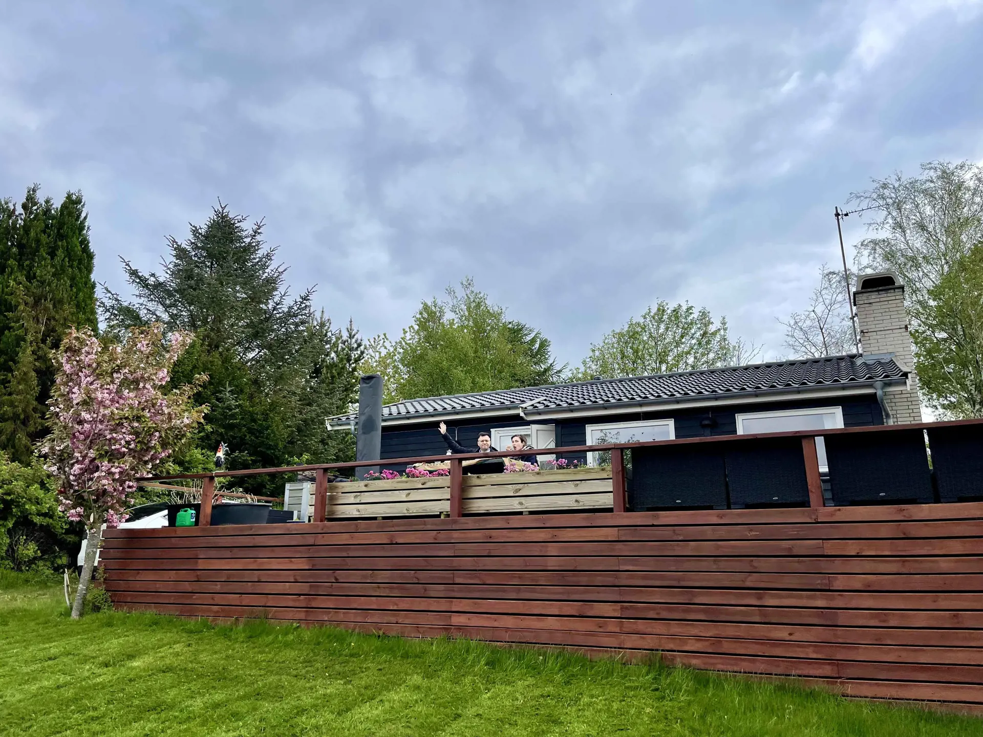 Im Wohnzimmer lockt der Fernseher mit entspannender Unterhaltung, doch draußen auf der weitläufigen Holzterrasse erwarten Sie die wahren Urlaubserlebnisse. Hier können Sie unzählige Sonnentage und laue Abende genießen, während der Duft köstlicher Grillgerichte in der Luft liegt. Entspannen Sie sich auf den Sonnenliegen, während die Kinder im privaten Garten spielen.