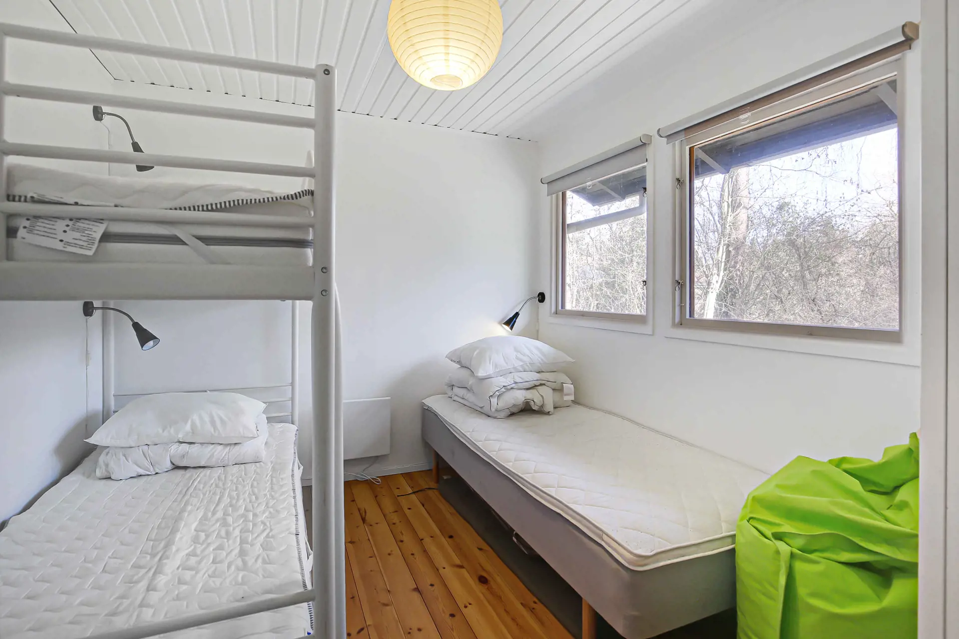 Mit zwei Schlafzimmern, darunter ein bequemes Doppelbett und einem charmanten Zimmer mit 3 Schlafplätzen, darunter einem Etagenbett und einem freistehenden Etagenbett, ist Platz für Familie und Freunde. Weitere Schlafplätze lassen sich problemlos über die im Wohnzimmer vorhandene Schlafcouch organisieren. Und im Winter nicht frieren, denn eine effiziente Luft/Luft-Wärmepumpe sorgt für angenehme Wärme.