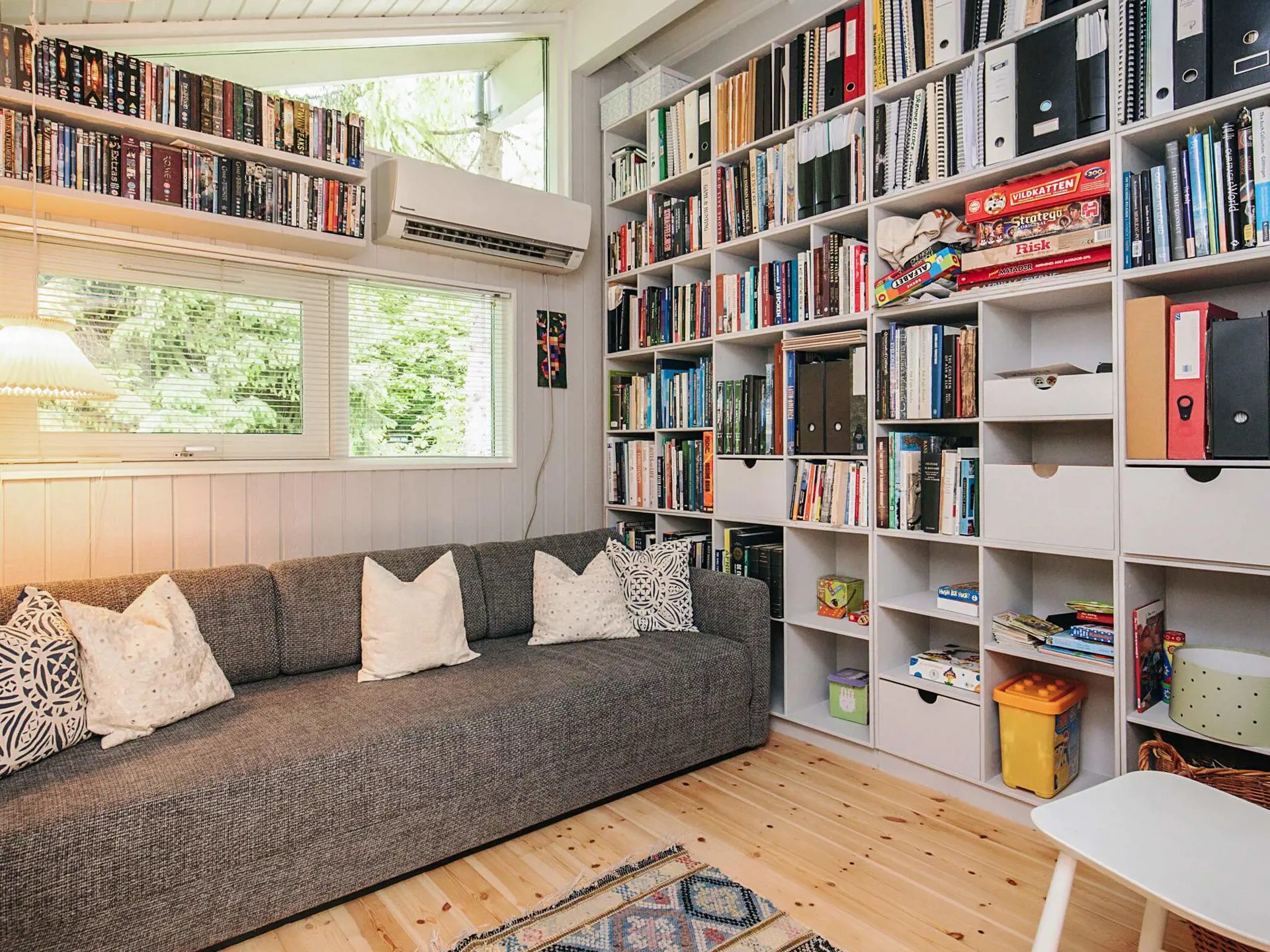 Das Ferienhaus hat einen offenen Küche-/Wohnbereich für das Familienleben. Gute Küchenausstattung mit u.a. Ceranfeld, Dunstabzugshaube, Mikrowelle und Geschirrspüler. Im praktischen Hauswirtschaftsraum stehen zudem Waschmaschine und Wäschetrockner bereit. Im gemütlichen Wohnbereich findet man Holzofen, freies WLAN sowie TV mit Chromecast und DVD-Player vor. Vom Wohnbereich aus haben Sie Zugang zu einer überdachten Terrassenfläche mit Gartenmöbeln.