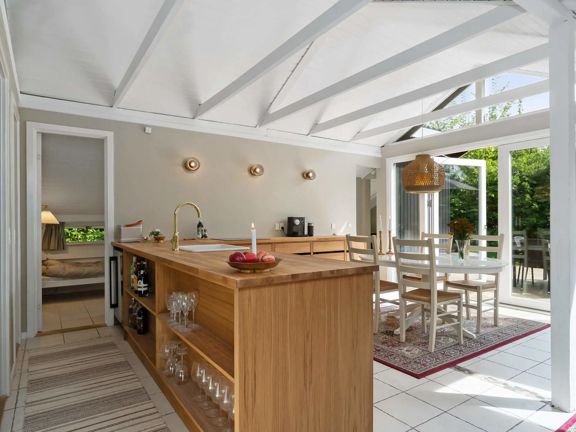 Im Haus offene Küche mit Induktionskochfeld, Backofen, Mikrowelle, Kühl- und Gefrierschrank sowie Geschirrspüler, damit Sie die Mahlzeiten im Kreise Ihrer Familie zubereiten können. Im Wohnbereich gleich nebenan können Sie abends vor dem Fernseher mit Chromecast entspannen, die Warme des Kaminofens genießen oder in der gemütlichen Leseecke entspannen.