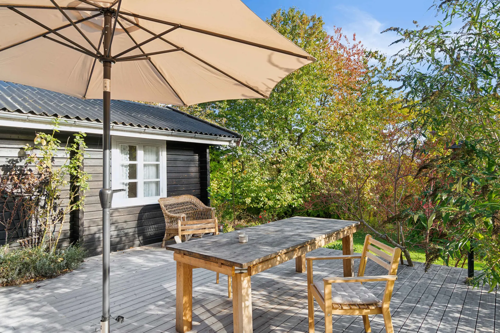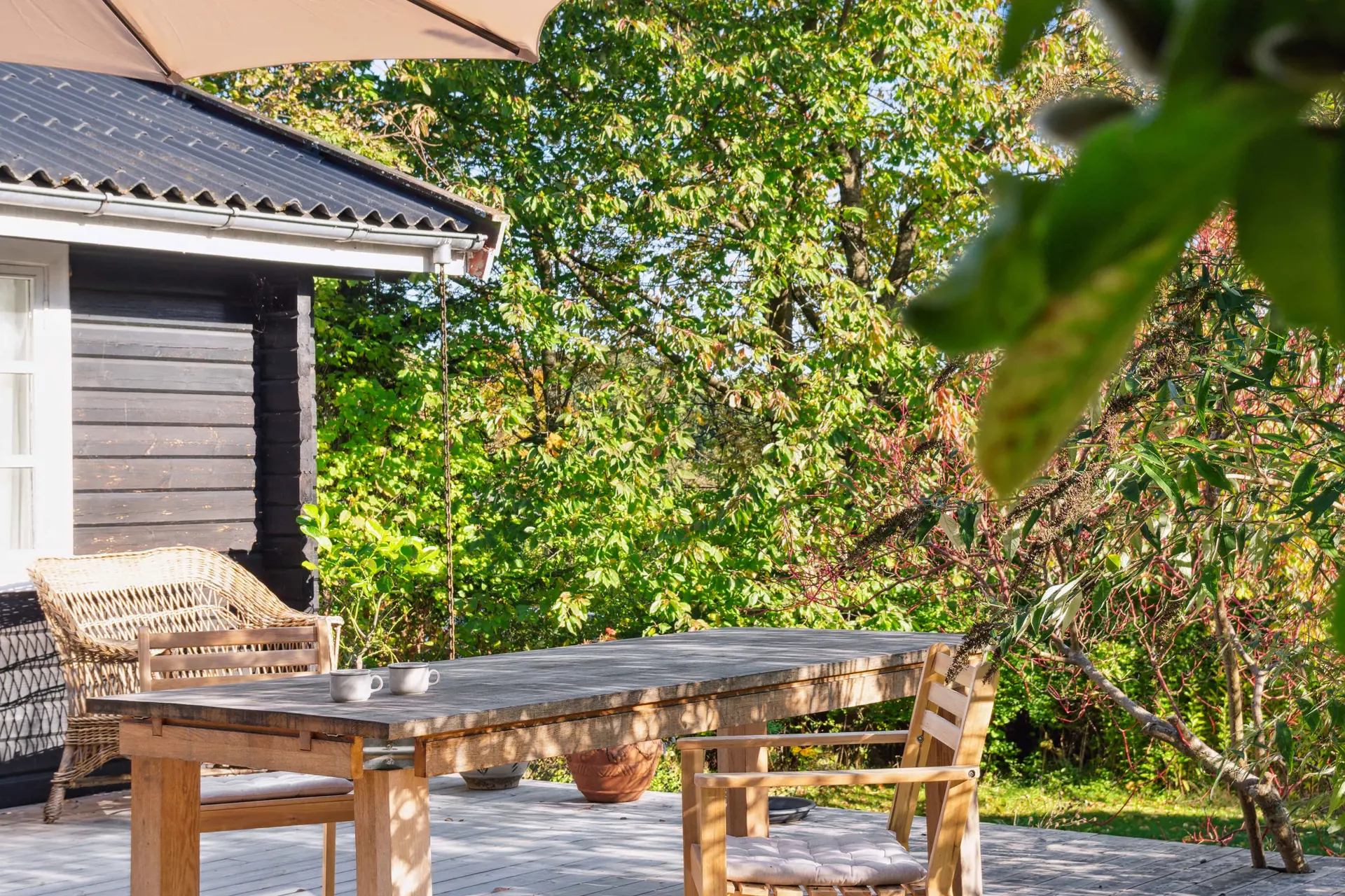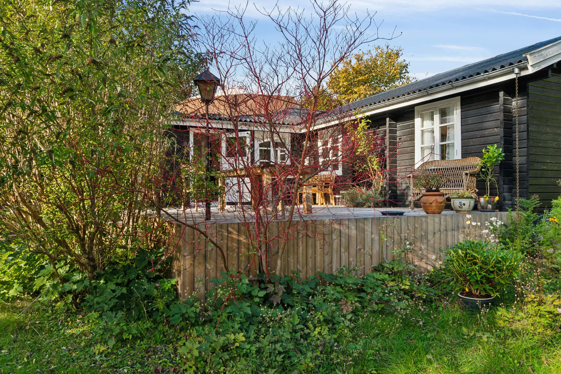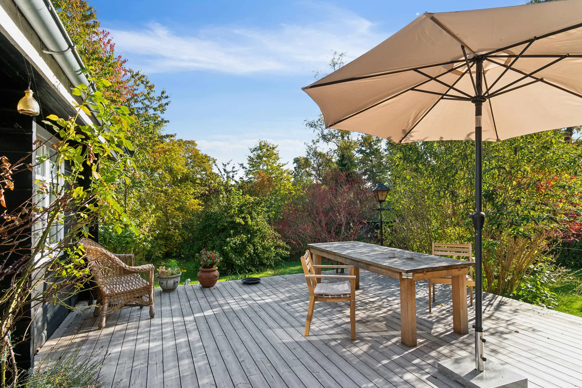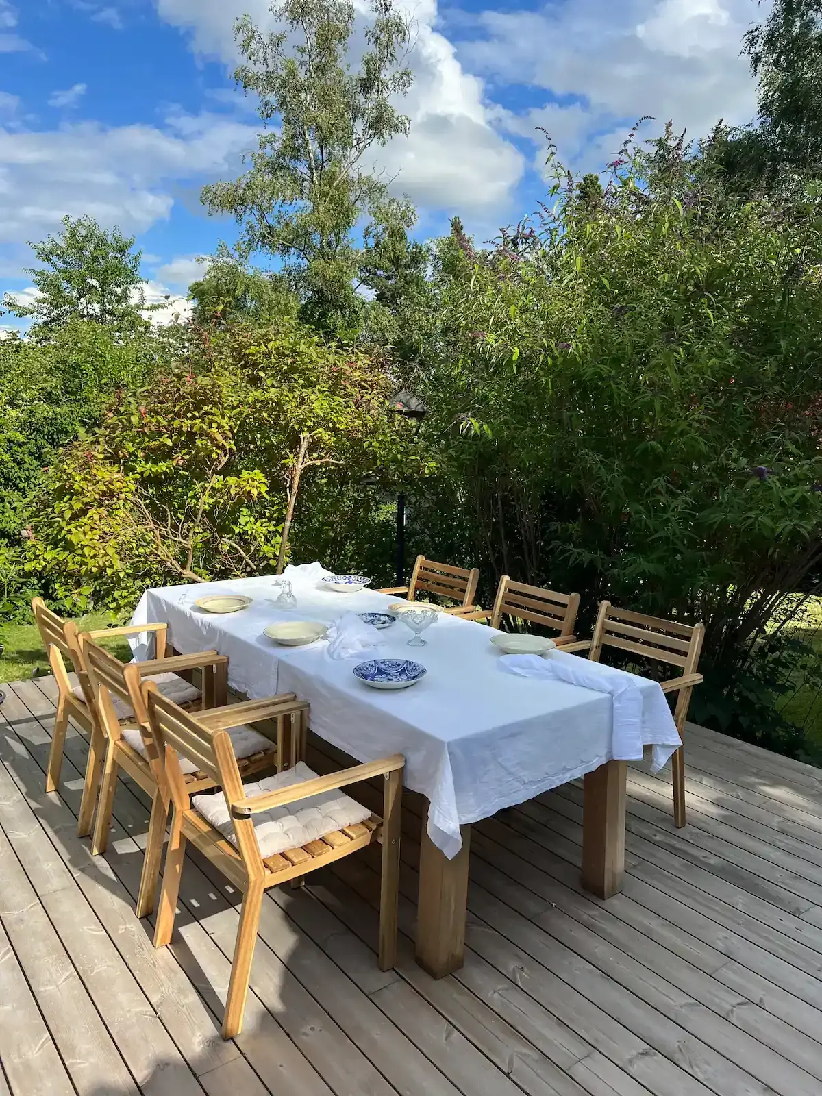 Draußen können Sie den großen, privaten Garten mit idyllischer Bepflanzung und schönen Bäumen genießen, mit schattigen Ecken und Platz für Familienzeit oder einfach zum Entspannen in der Sonne. Die neue Holzterrasse dient als Treffpunkt für Mahlzeiten im Freien und gemütliche Sommerabende.