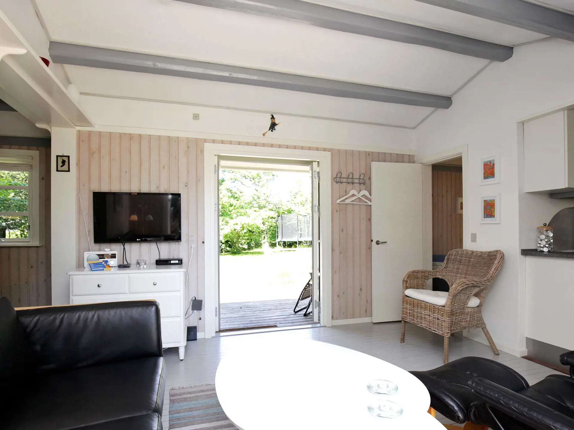 Helles Ferienhaus auf einem großen, sonnigen Grundstück mit Platz für Spiel und Spaß gelegen. Eine Terrasse lädt zum gemütlichen Grillen und Sonnenbaden ein. Das Haus ist hell eingerichtet, mit Bad, Küche, zwei Schlafzimmern, Wohnzimmer mit Essbereich, TV und Chromecast zum Streamen eigener Anbieter sowie großen Terrassentüren, die viel Licht hereinlassen. Klimafreundliche Wärmepumpe vorhanden, zudem ein Holzofen für gemütliche Wärme an kühleren Abenden. Im kleinen, separaten Annex steht zudem ein Doppelbett bereit.