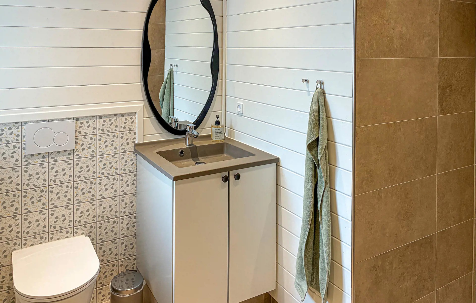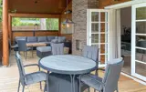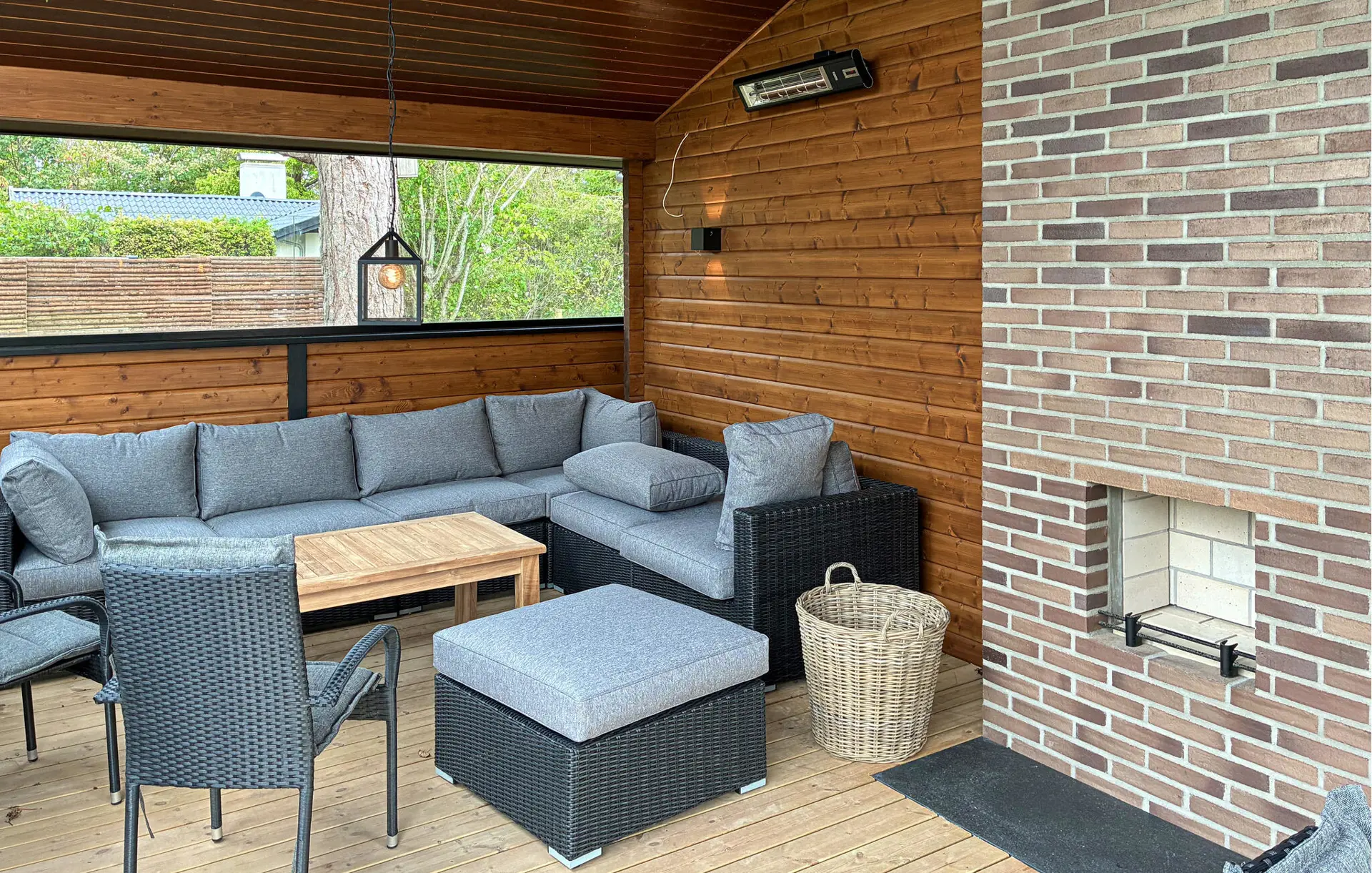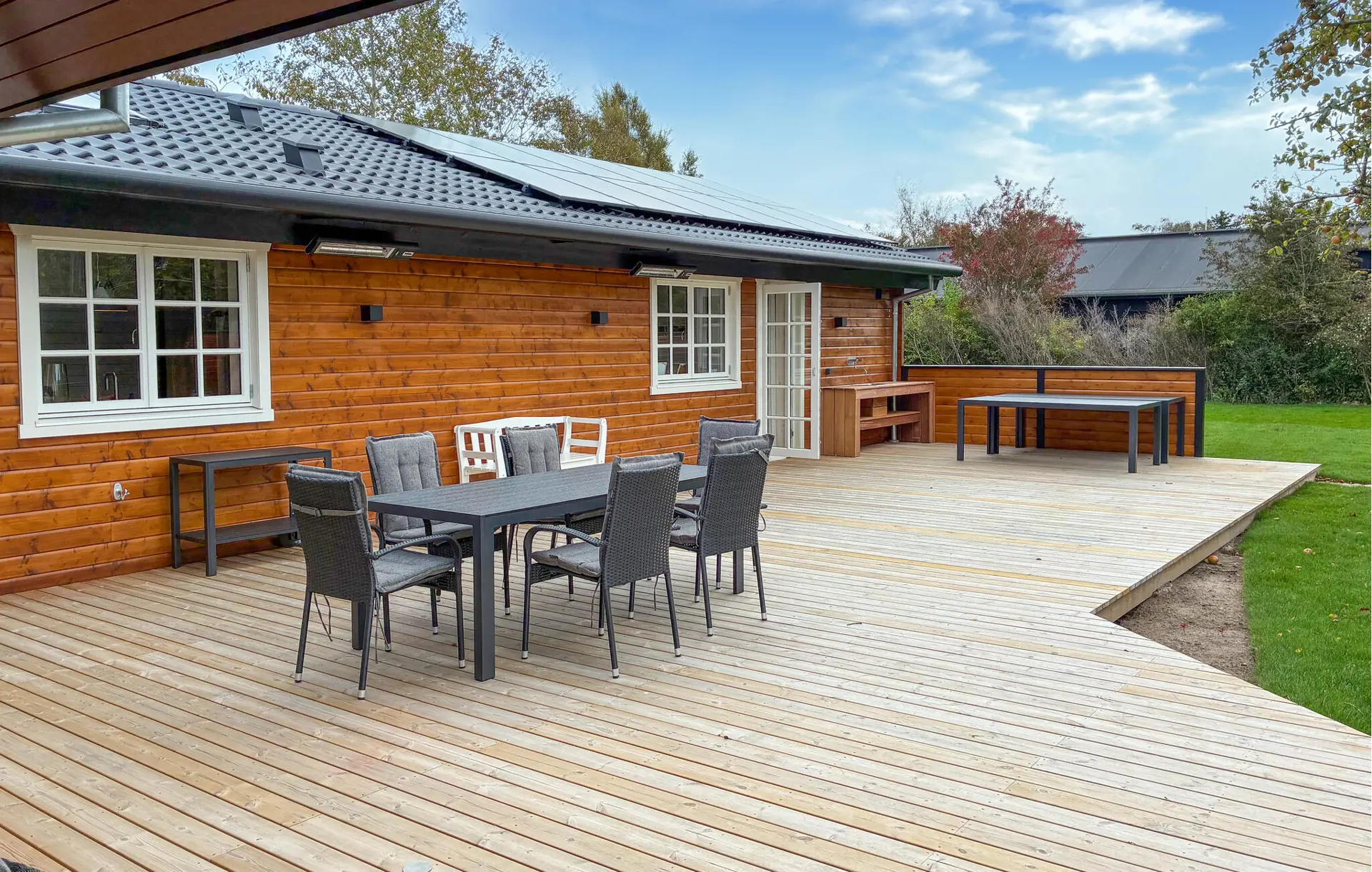 Treten Sie mit Ihrem Morgenkaffee hinaus auf die Terrasse und genießen Sie den Duft von Holz und frischer Waldluft. Die ruhige Umgebung mit ihrem grünen Garten und den hohen Bäumen lädt dazu ein, tief durchzuatmen und den Tag ganz entspannt zu beginnen. Auf der überdachten Terrasse können Sie in aller Ruhe frühstücken oder sich mit einem guten Buch in die bequemen Loungemöbel zurücklehnen. Später entspannen Sie im warmen Wasser des Whirlpools oder zünden abends den Grill an und lassen den Tag bei gutem Essen und Kerzenschein gemütlich ausklingen.