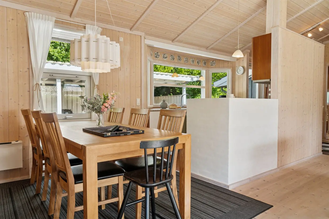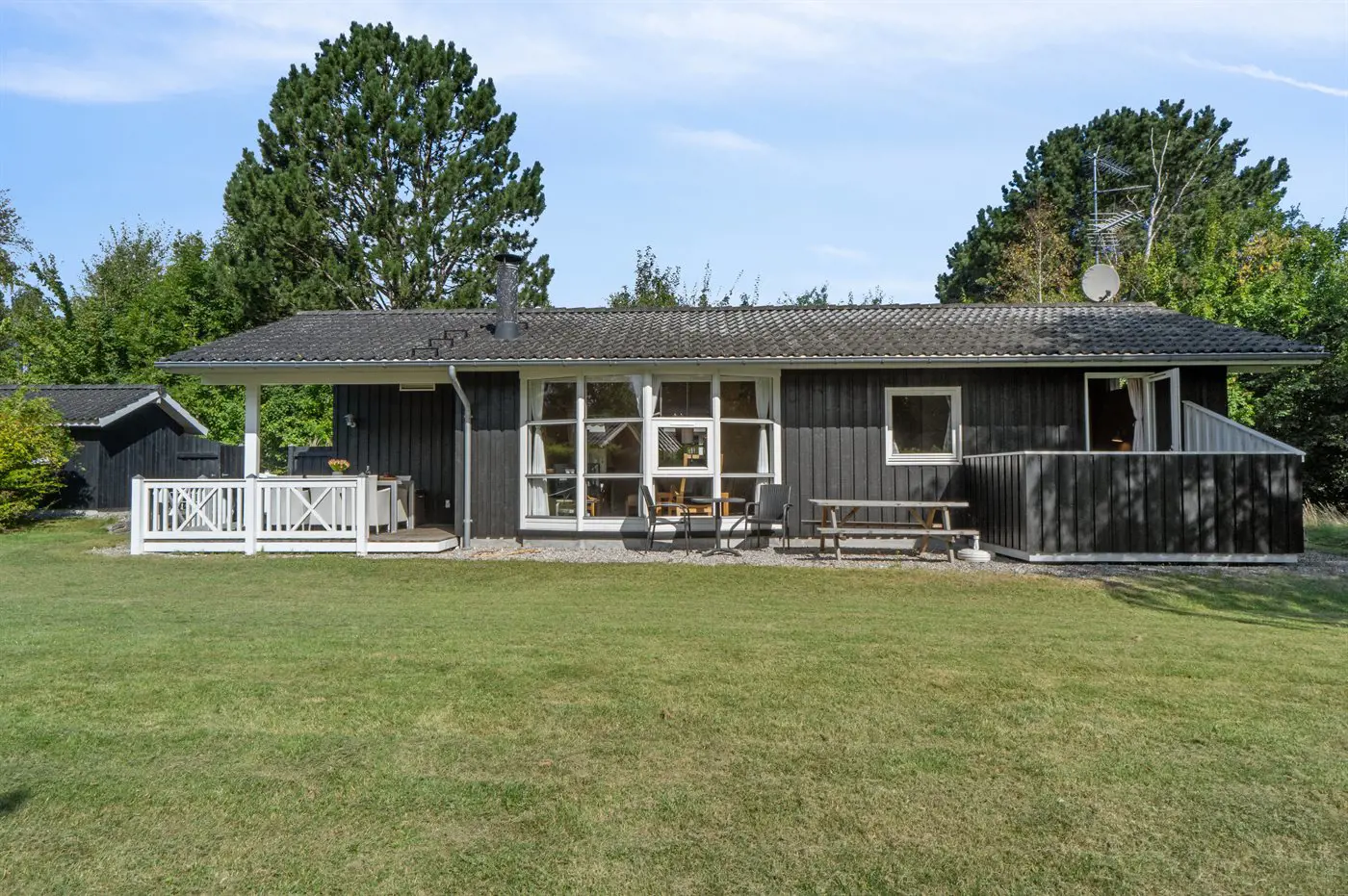 Ein schönes Ferienhaus in ruhiger und naturnaher Lage bei Vejby Strand, nur wenige Autominuten von Tisvildeleje entfernt. Das Haus bietet dir eine helle und einladende Atmosphäre mit Kaminofen und großen Fenstern, die für viel Licht und einen schönen Blick in den Garten sorgen. Das Wohnzimmer ist offen mit Küche und Essbereich verbunden und schafft so den idealen Rahmen für gemeinsame Zeit und Gemütlichkeit.