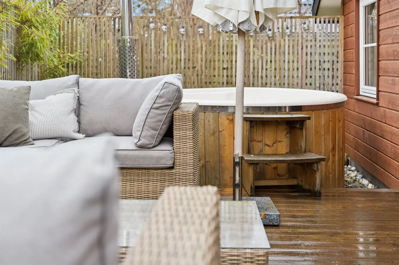 Das Haus ist hell und einladend mit einem offenen Wohnbereich, der eine angenehme Atmosphäre für Entspannung und geselliges Beisammensein schafft. Draußen findest du eine sonnige Terrasse und ein großes Grundstück – und natürlich das Highlight des Hauses: ein privates Hot Tub, das du das ganze Jahr über genießen kannst, egal ob der Abend Meeresnebel, Sommersonne oder einen sternenklaren Winterhimmel bereithält.