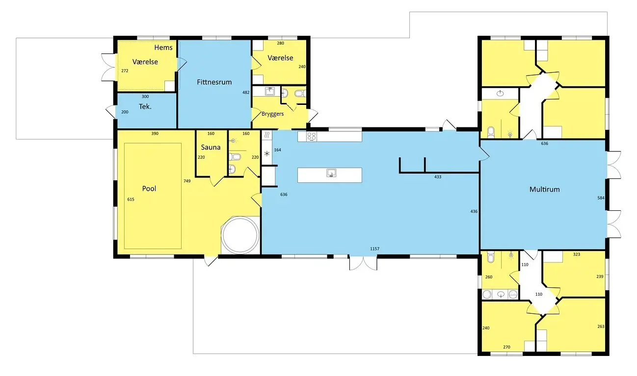 Das moderne Ferienhaus für 20 Personen in der Nähe von Rågeleje und Vejby Strand bietet zahlreiche Annehmlichkeiten wie einen Pool und einen Fitnessraum. Die Lage an der Kattegatküste ist ideal für Aktivitäten wie Wandern, Radfahren, Wassersport, Windsurfen, Kitesurfen und Golfen. Das Ferienhaus eignet sich perfekt für große Familien oder Freundesgruppen und verfügt über acht gemütliche Zimmer, verteilt auf zwei Schlafbereiche mit Dusche und Toilette, sowie zwei zusätzliche Schlafzimmer und einen Dachboden im Fitnessbereich, der sich besonders für Kinder eignet. Die Küche, ausgestattet mit allem Notwendigen, ist das Herz des Hauses. Hier kann man sich nach dem Kochen im gemütlichen Wohnzimmer entspannen, Filme schauen oder einfach die gemeinsame Zeit genießen. Der Aktivitätsraum bietet Unterhaltung für alle Altersgruppen mit Darts, Tischtennis, Billard, Tischfußball, einem Nintendo und einer Bar für Sportübertragungen. Der Fitnessraum ist mit Yogamatten, TRX-Geräten und einer Stange ausgestattet. Für Entspannung sorgt der luxuriöse Poolbereich mit Sauna, Whirlpool und einem großen Innenpool. Auf der großen Holzterrasse kann man Sommerabende beim Grillen und in guter Gesellschaft genießen, während Kinder im umzäunten Garten auf Schaukeln und im Sandkasten spielen können. Zudem gibt es ein Rebounder-Trampolin, ein Spikeball-Set und einen gemütlichen Shelter für Naturliebhaber. Eine Ladestation für Elektroautos ist ebenfalls vorhanden. Bitte beachten Sie, dass dieses VillaVilla-Haus nicht an Jugendgruppen vermietet wird.