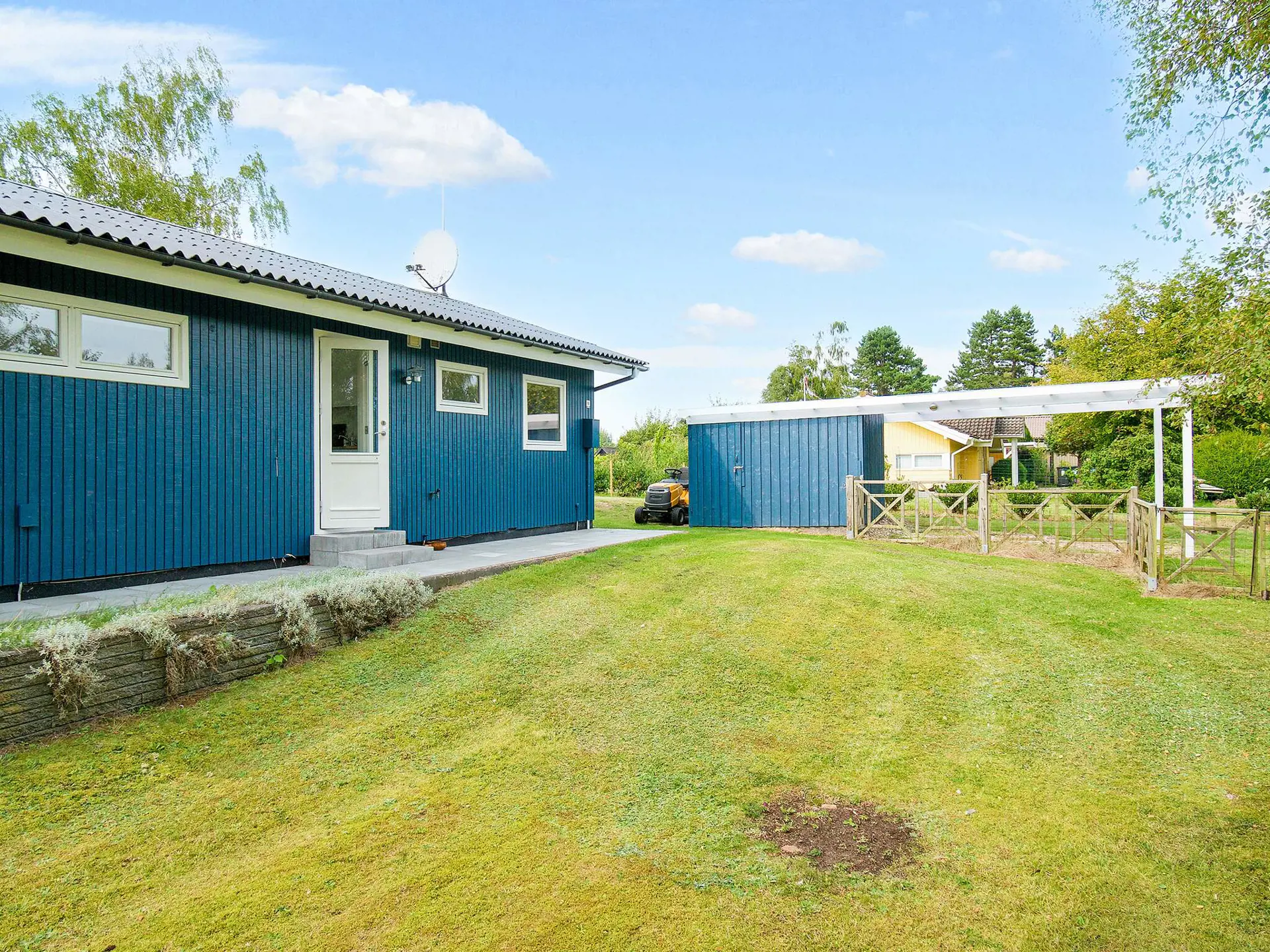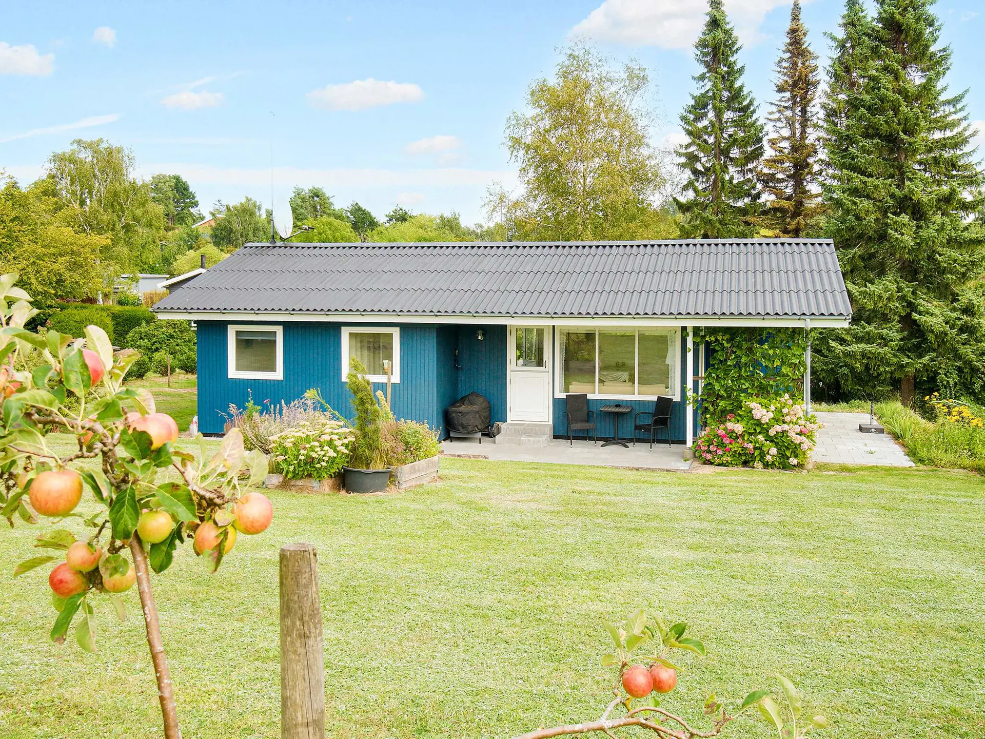 Vom Wohnbereich aus haben Sie direkten Zugang zum großen und gepflegten Gartengrundstück mit einer gemütlichen, überdachten Veranda. Dort zünden Sie abends den Grill an und genießen die Abendsonne und die Stille. Es sind nur ca. 600 m hinunter zum schönen kinderfreundlichen Strandufer mit verschiedenen Badestegen.