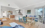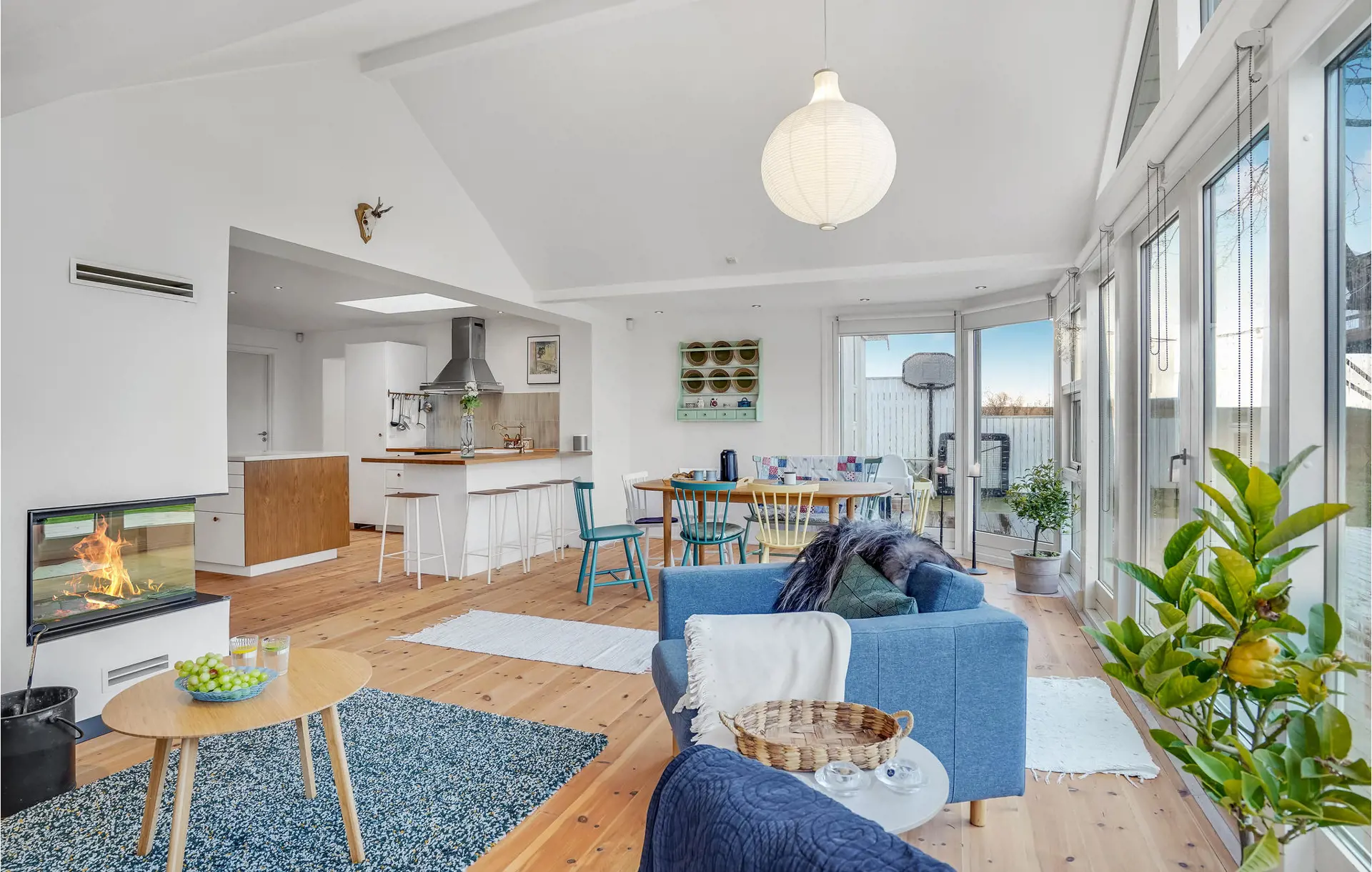 Freuen Sie sich auf Ihren Familienurlaub in diesem fantastischen Haus. Es ist der ideale Ort, um die Seele baumeln zu lassen und sich von Ihrem hektischen Alltag zu erholen. Das hell gestaltete Haus mit großem Fenster umgibt eine einladende und großartige Wohlfühlatmosphäre. Der große Wohnraum ist perfekt, um zu kommunizieren, denn die offene Gestaltung lässt Sie in allen Bereichen des Raumes an den Gesprächen teilnehmen. Genießen Sie gesellige Abende, bei einem knisternden Kaminfeuer und guten Gesprächen. Planen Sie dabei Ihre Aktivitäten und Ausflüge für die anstehenden Urlaubstage, die Sie mit einem Frühstück unter freiem Himmel auf der Terrasse beginnen können.