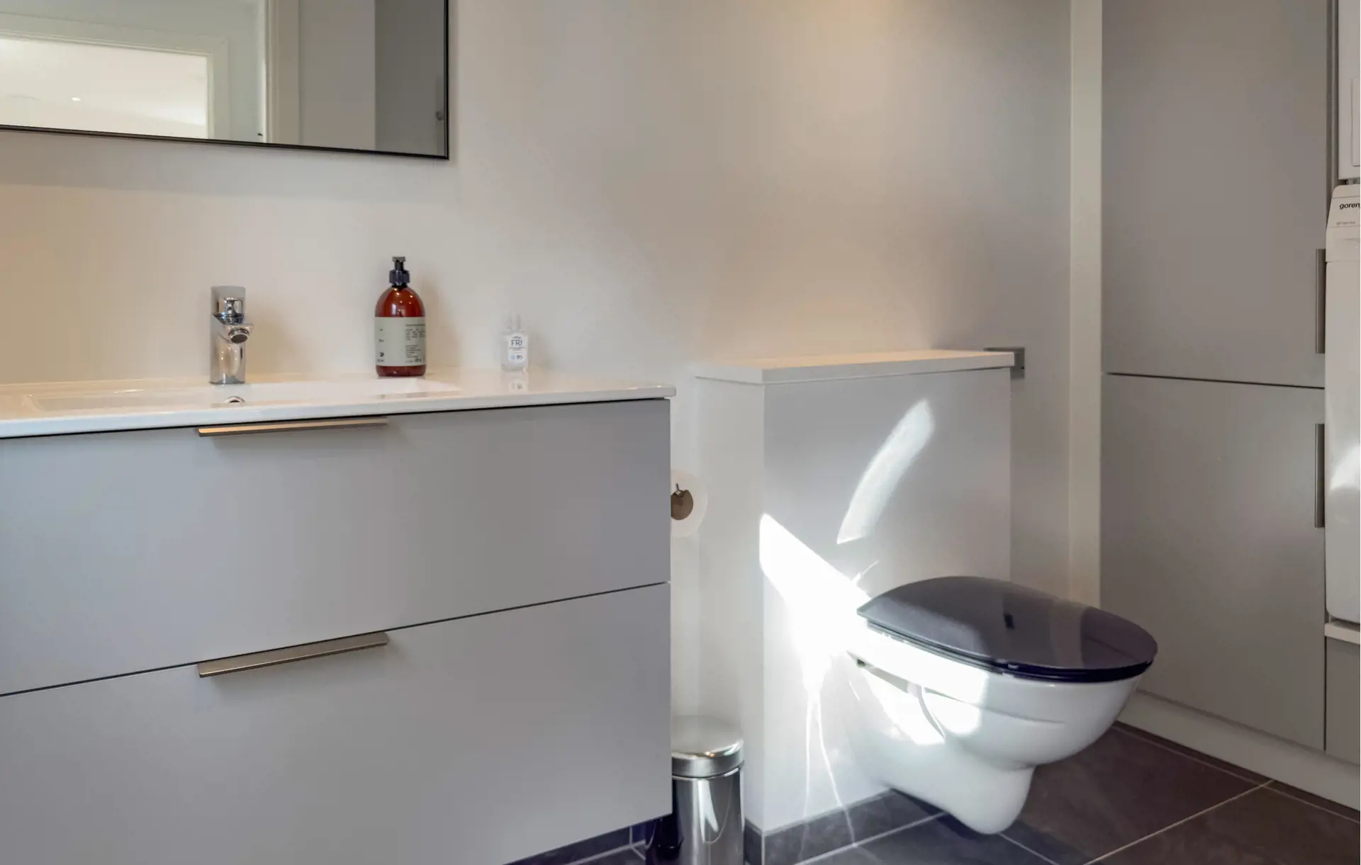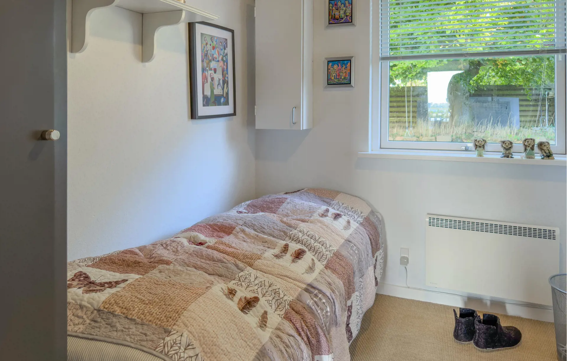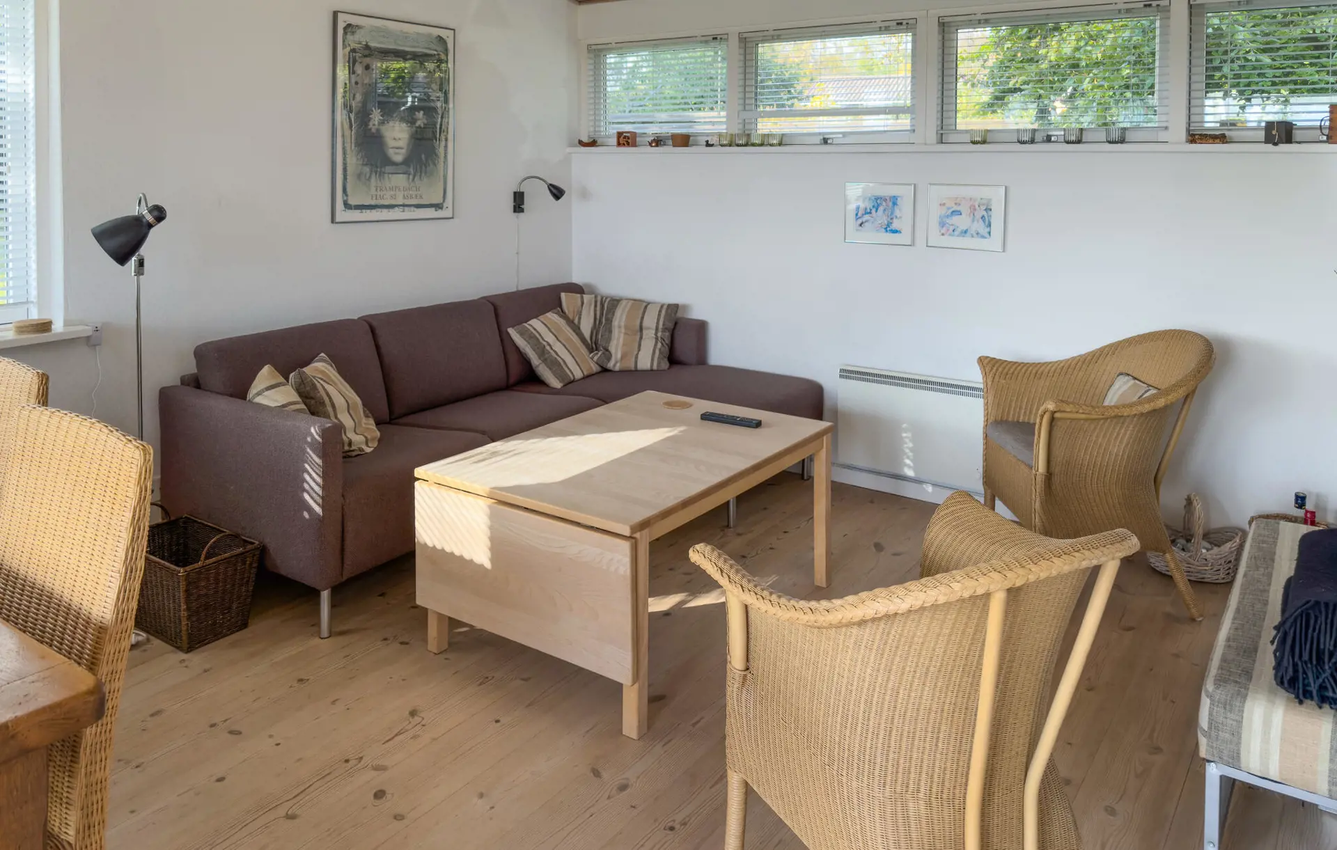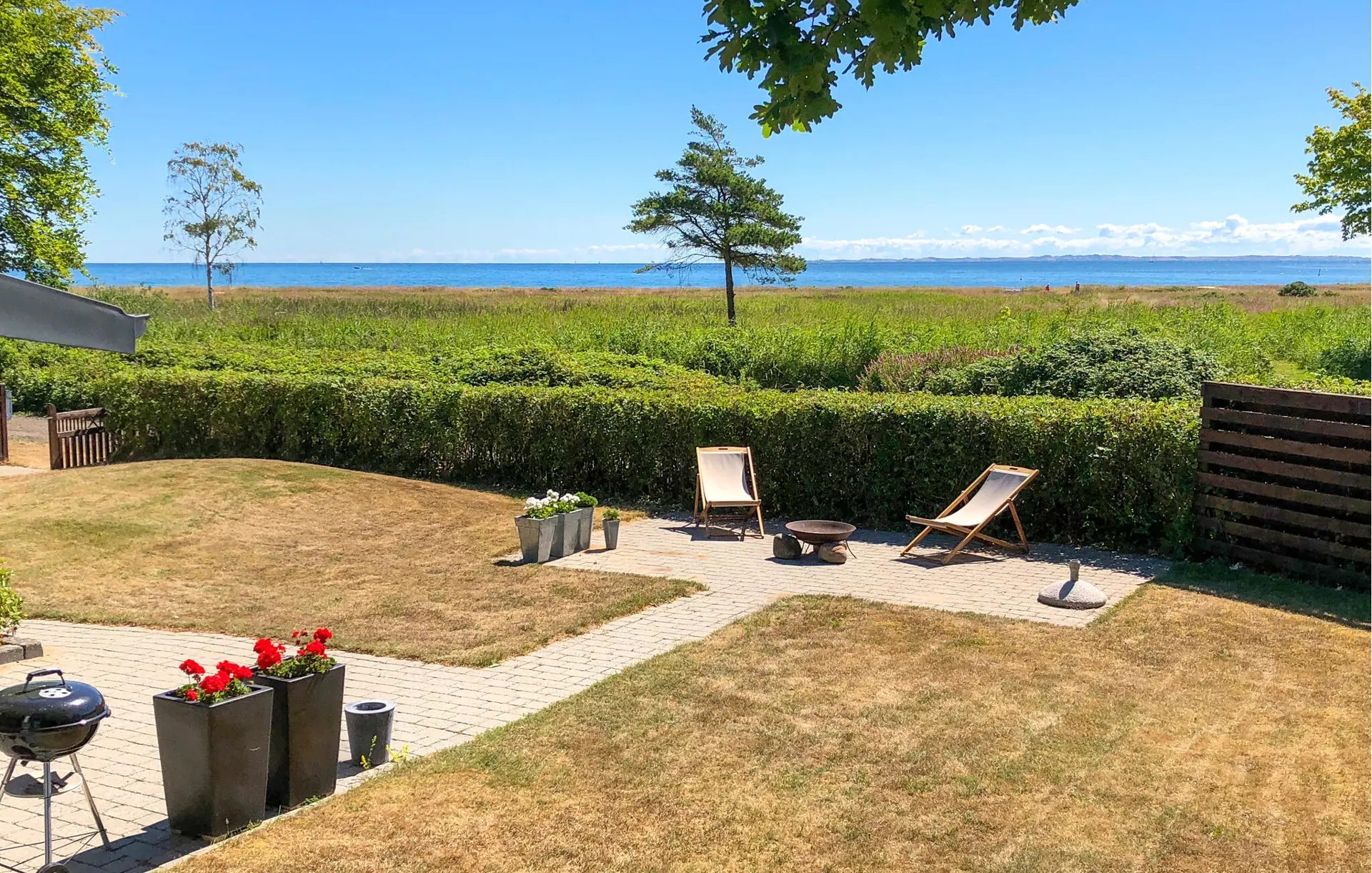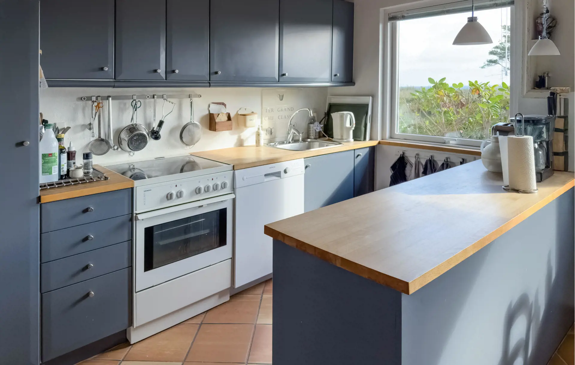 Nur wenige Schritte trennen Sie in diesem Ferienhaus vom Wasser, und der Blick auf die Bucht begleitet Sie vom Frühstück bis zum Sonnenuntergang. Lassen Sie im gemütlichen Wohnbereich den Blick durch die großen Fenster bis zum Meer schweifen. Machen Sie es sich auf dem Sofa bequem, genießen Sie die warmen Holztöne und die harmonische Einrichtung. Der offene Essbereich schafft Raum für gemeinsame Mahlzeiten, während die schöne Küche mit klaren Linien und großzügigen Arbeitsflächen zum Kochen einlädt. Bereiten Sie Ihre Lieblingsgerichte mit Meerblick zu und erleben Sie echtes Hygge-Gefühl.