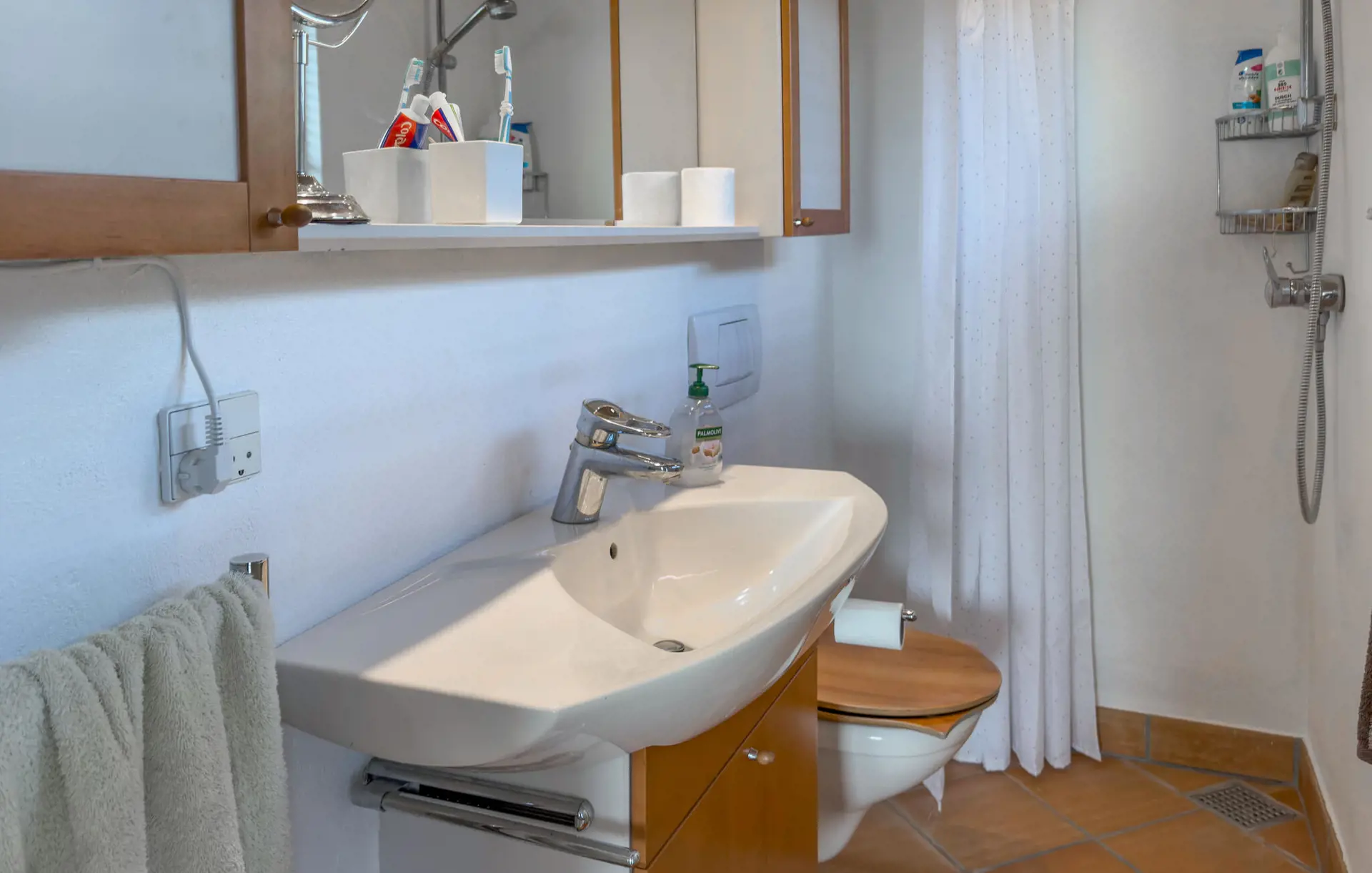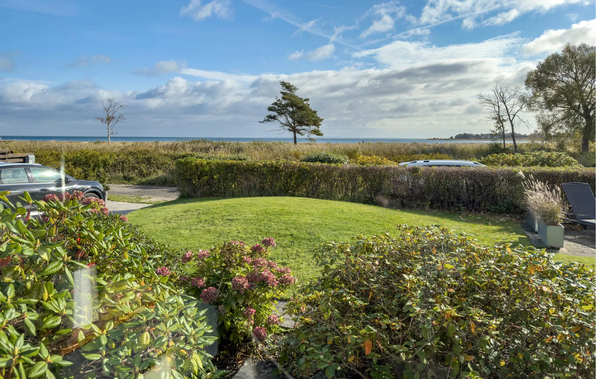 Treten Sie hinaus auf die sonnige Terrasse. Nehmen Sie am Tisch Platz, genießen Sie Ihr Frühstück an der frischen Luft oder entspannen Sie auf den Liegestühlen mit Blick auf das Meer. Der gepflegte Garten mit blühenden Sträuchern und grüner Hecke bietet Privatsphäre und einen schönen Rahmen für erholsame Stunden.