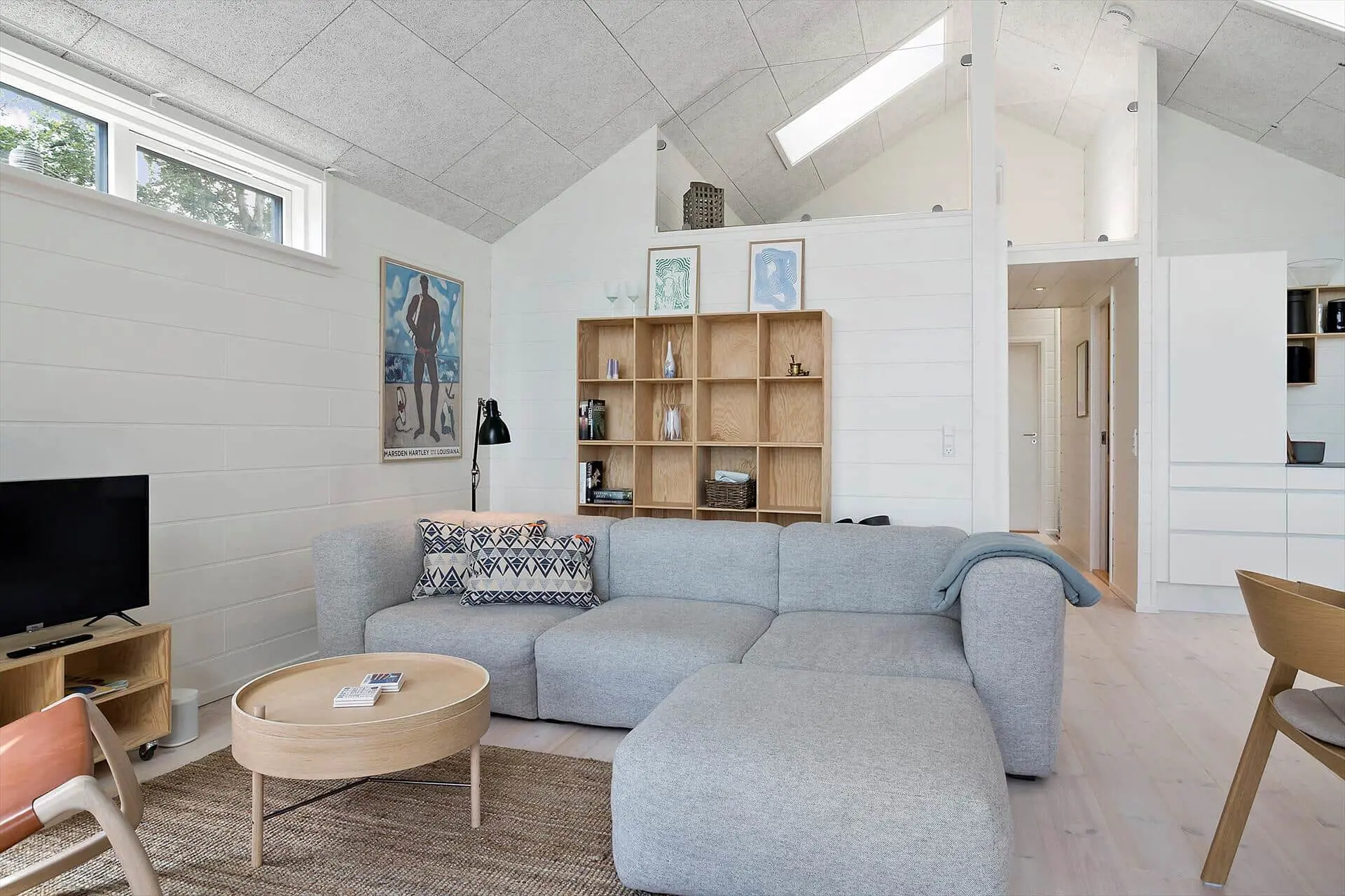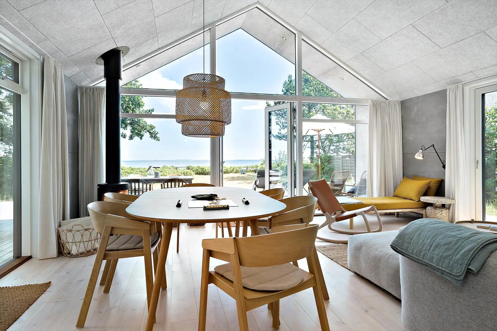 In direkter Verbindung zur Küche locken der Essplatz und die gemütliche Sofagruppe. Hier können Sie nach einem langen Tag am Strand in gemütlicher Runde beisammensitzen, gemeinsam essen, Spiele spielen oder auch einfach den prachtvollen Meerblick auf sich wirken lassen. Im Wohnraum sorgt ein Fernseher mit Chromecast für Unterhaltung. Über Ihr Smartphone oder Tablet und mittels Ihres privaten Streamingabos können Sie somit Filme, Serien und dergleichen auf den Fernseher streamen.