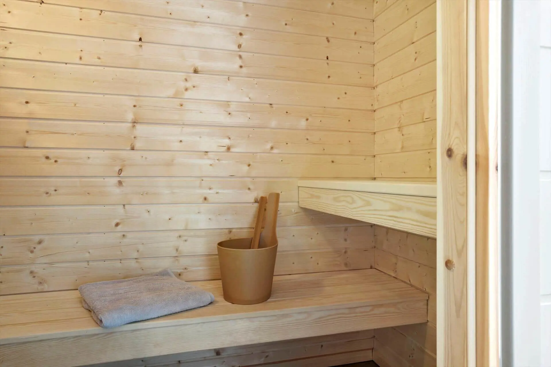 Die beiden richtig schönen Badezimmer verfügen über je eine Dusche und ein WC. Eines der Bäder verzückt zudem mit einer Sauna. Die Dusche dieses Bades befindet sich unter freiem Himmel.