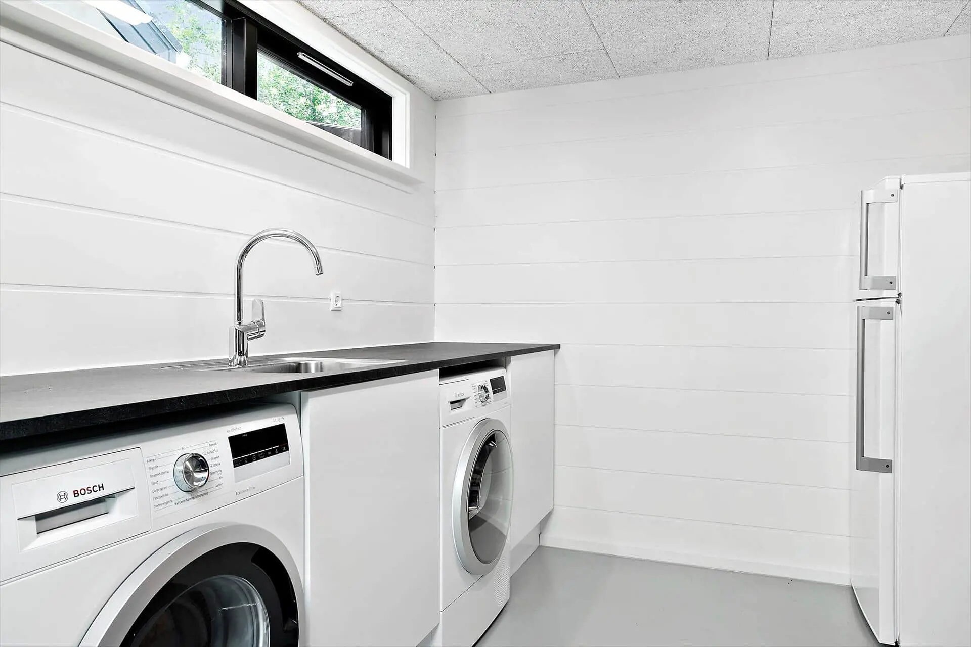 Der Schuppen beinhaltet einen zusätzlichen Kühl- und Gefrierschrank, eine Waschmaschine und einen Wäschetrockner. Somit dürfen Sie sich jeden Tag erneut auf frische Handtücher für den Strand freuen.