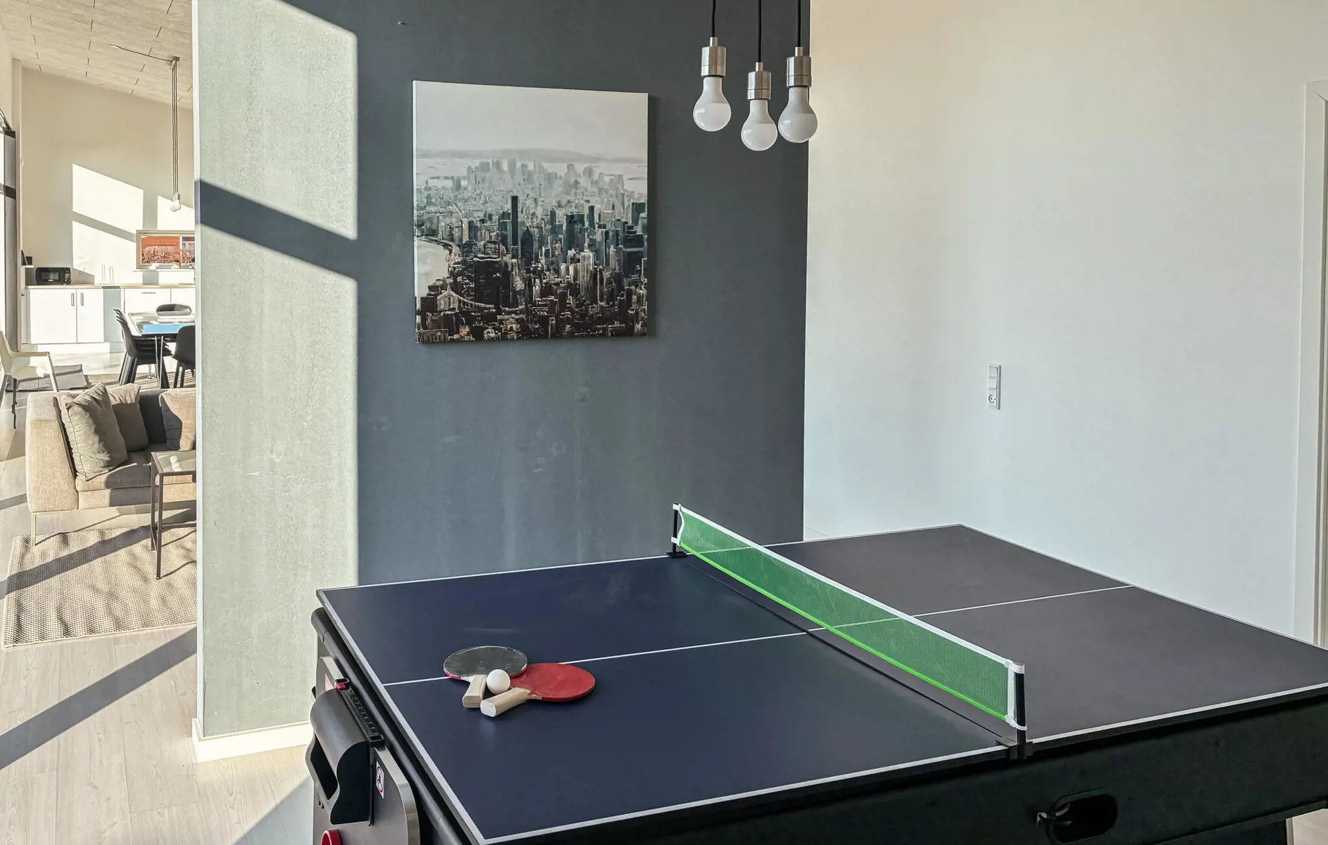 Dieses Haus ist ideal für Sie, wenn Sie mit einer großen Familie oder vielen Freunden reisen. Es bietet sowohl ausreichend Platz als auch viele Möglichkeiten für Aktivitäten. Verbringen Sie entspannte Stunden bei einem Filmabend und spielen Sie Billard, Airhockey und Tischtennis. Wenn Sie Körper und Geist entspannen möchten, ist ein Gang in die Sauna genau das Richtige für Sie.