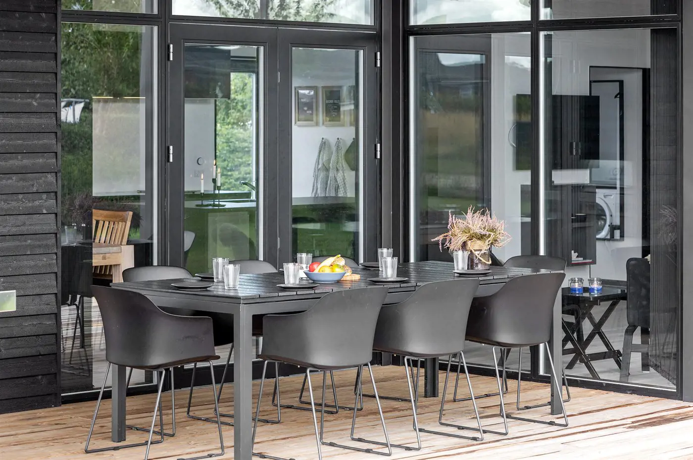 Die Ferienunterkunft liegt auf einem 830 m² großen Gartengrundstück. Die Entfernung zum Meer beträgt 300 m. Die nächste Einkaufsmöglichkeit liegt 1000 m entfernt. Es steht ein 100 m² Terrassenareal zur Verfügung. Außerdem gibt es 35 m² überdachte Terrasse. Schaukel. Spielturm. Rutsche. Fußballtor. Es steht ein Grill zur Verfügung. Parkplatz auf dem Grundstück.