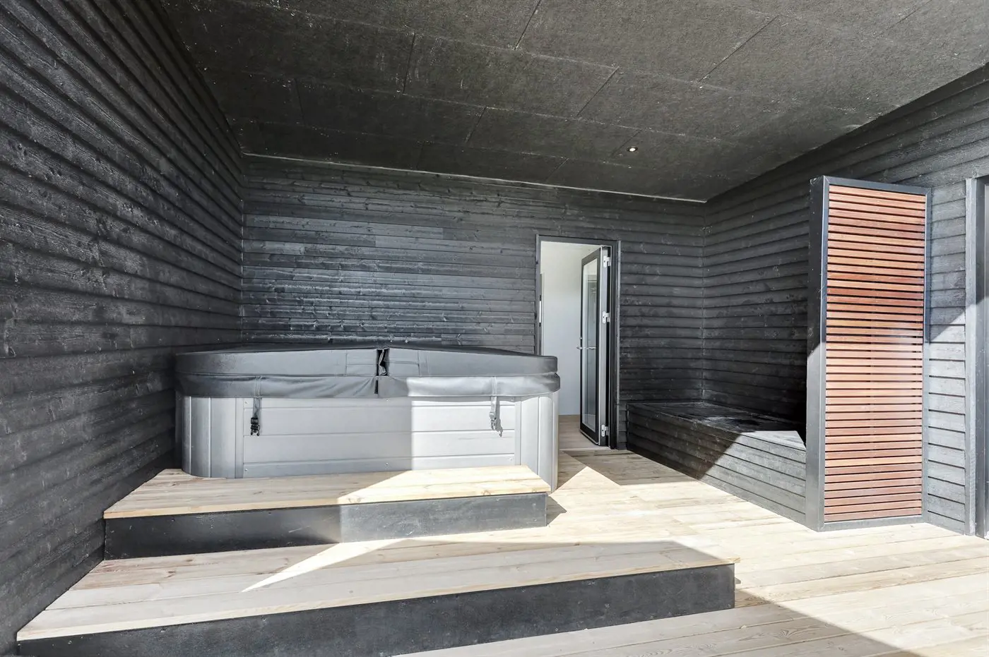 Fantastisches Ferienhaus, das im beliebten Urlaubsgebiet Saksild Strand liegt. Das Ferienhaus liegt dicht am Wasser und einem tollen Badestrand  Auf der schönen, teilweise überdachten Terrasse steht Ihnen ganzjährig ein toller Whirlpool für 5 Personen zur Verfügung. Zudem gibt es diverses Gartenspielzeug und ein Basketballplatz mit einem Korb.