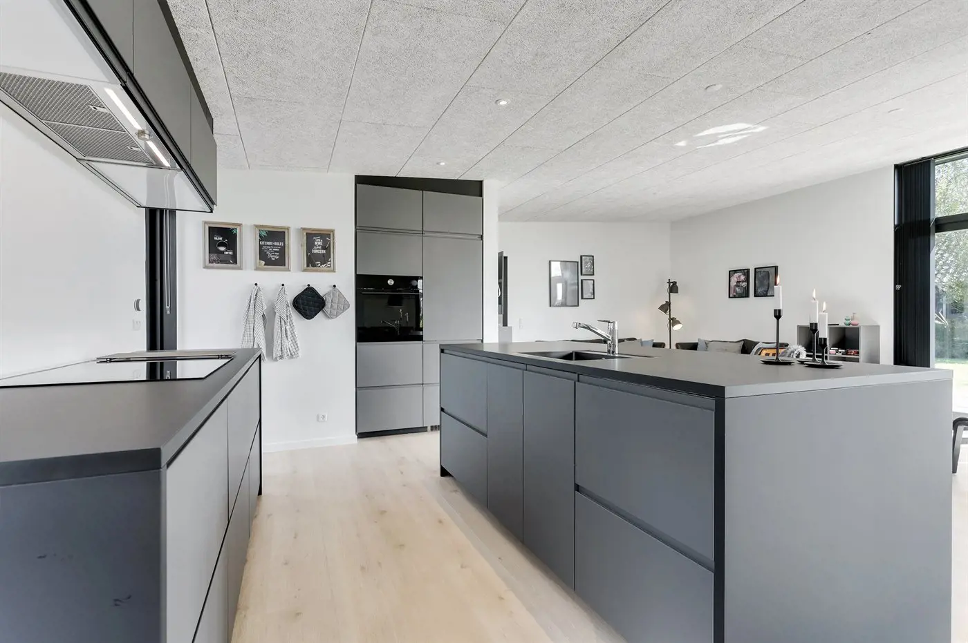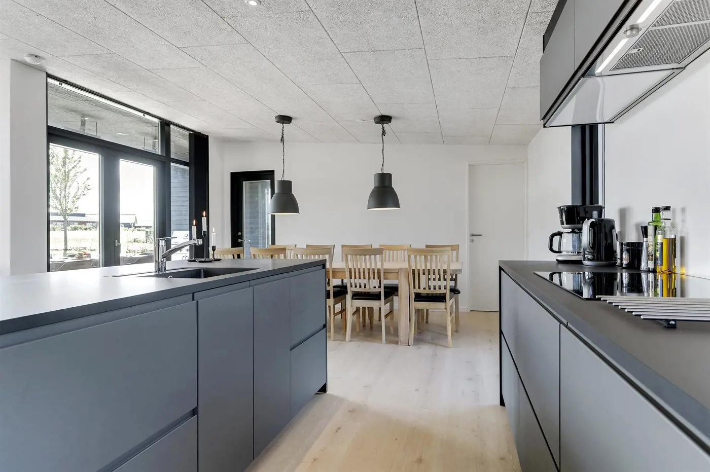 Die Küche ist mit Kühlschrank ausgestattet. Außerdem gibt es 4 Induktions-Kochzonen, Umluftofen, Mikrowelle sowie Geschirrspüler.