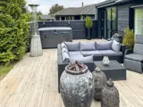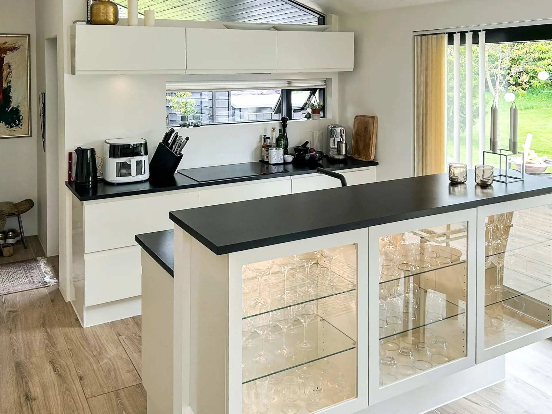 Dette moderne sommerhus, opført i 2021 og nænsomt renoveret i 2025, danner de perfekte rammer for en afslappende ferie.