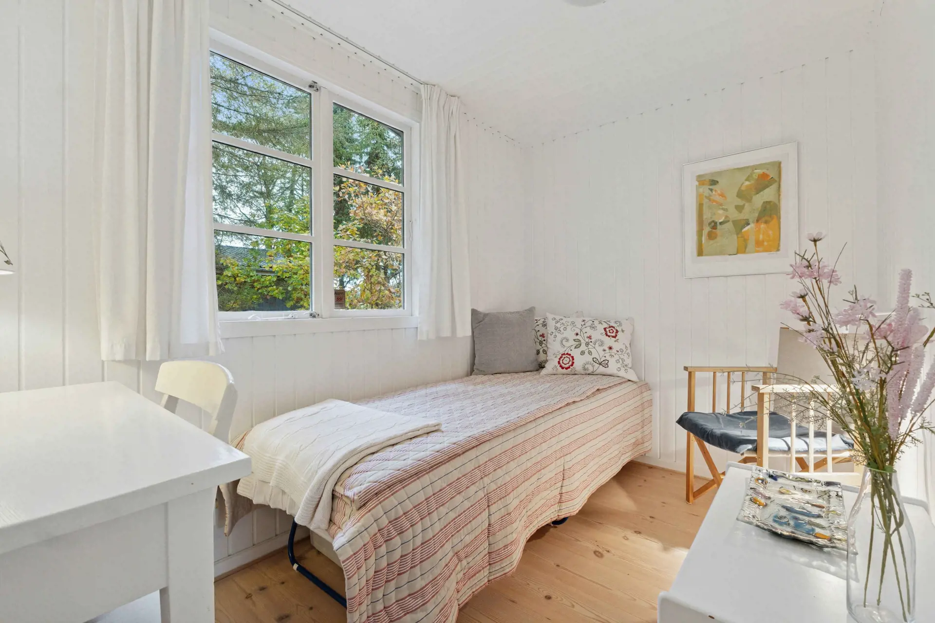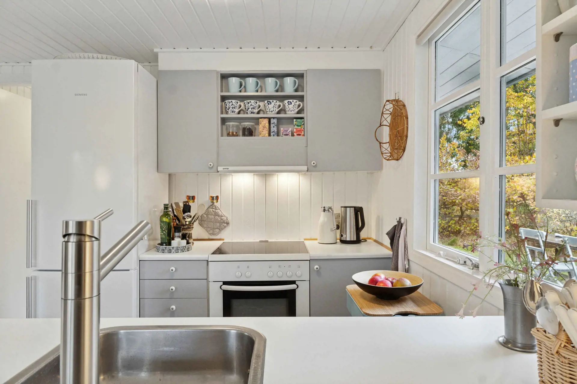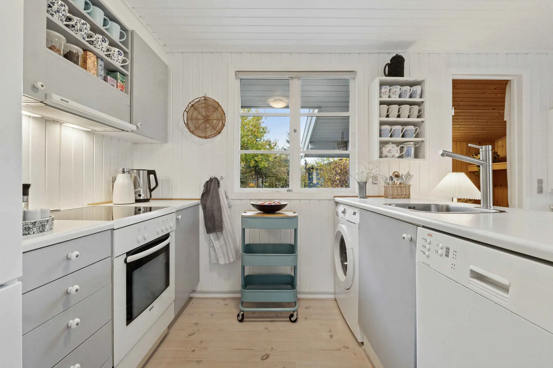 Im Inneren erwarten Sie helle Räume mit großen Fenstern, die die Natur direkt in den Wohnbereich holen. Küche und Wohnzimmer sind offen gestaltet und ermöglichen ein gemeinsames Miteinander – ob beim Kochen, Spielen oder Entspannen auf dem Sofa. Der Grundriss ist schlicht und funktional.
